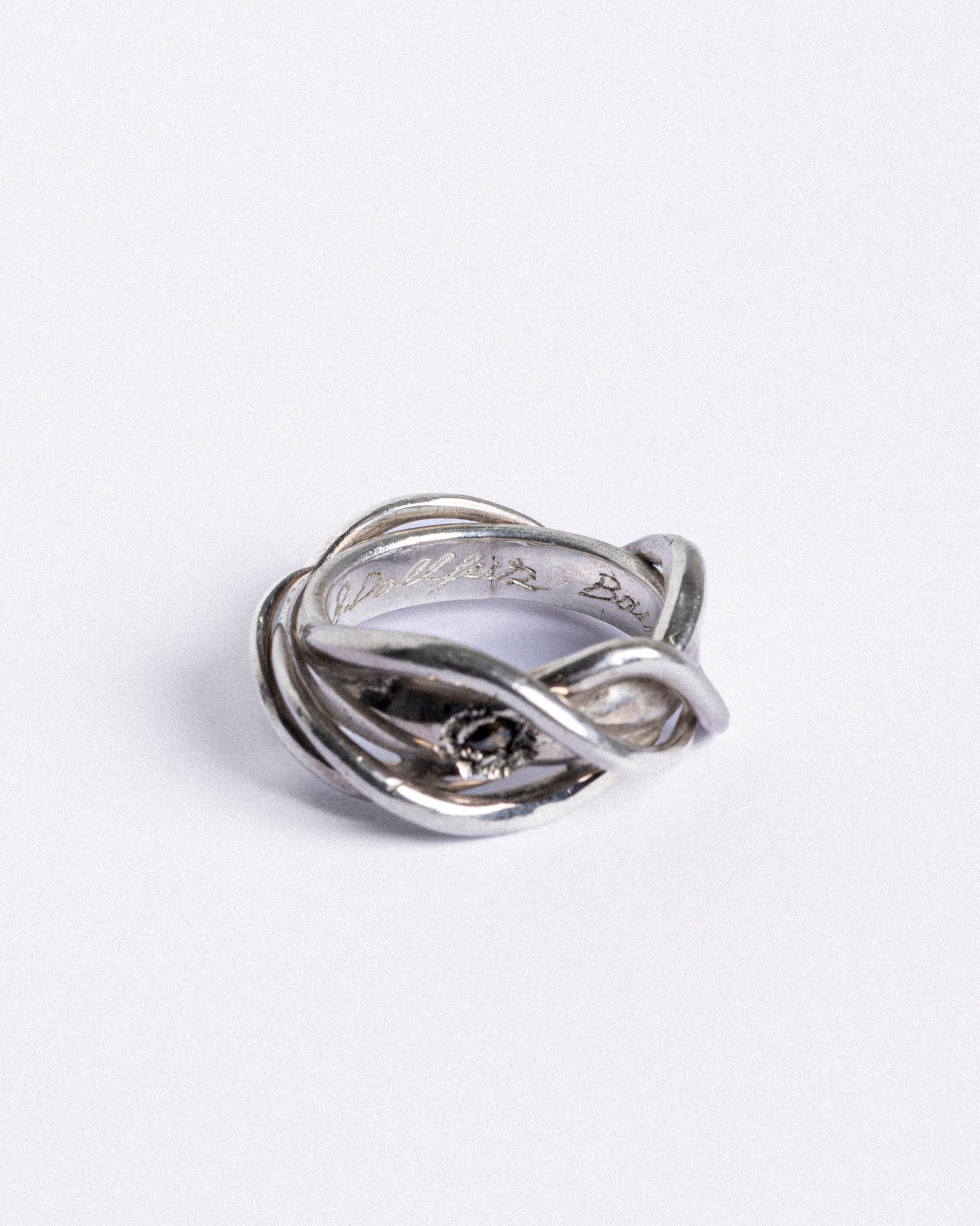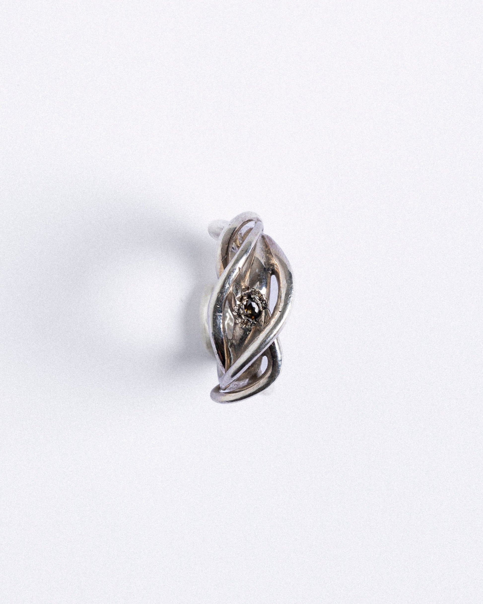 Bague à cristal solitaire noir en argent 950, signée Basile Dollfus.