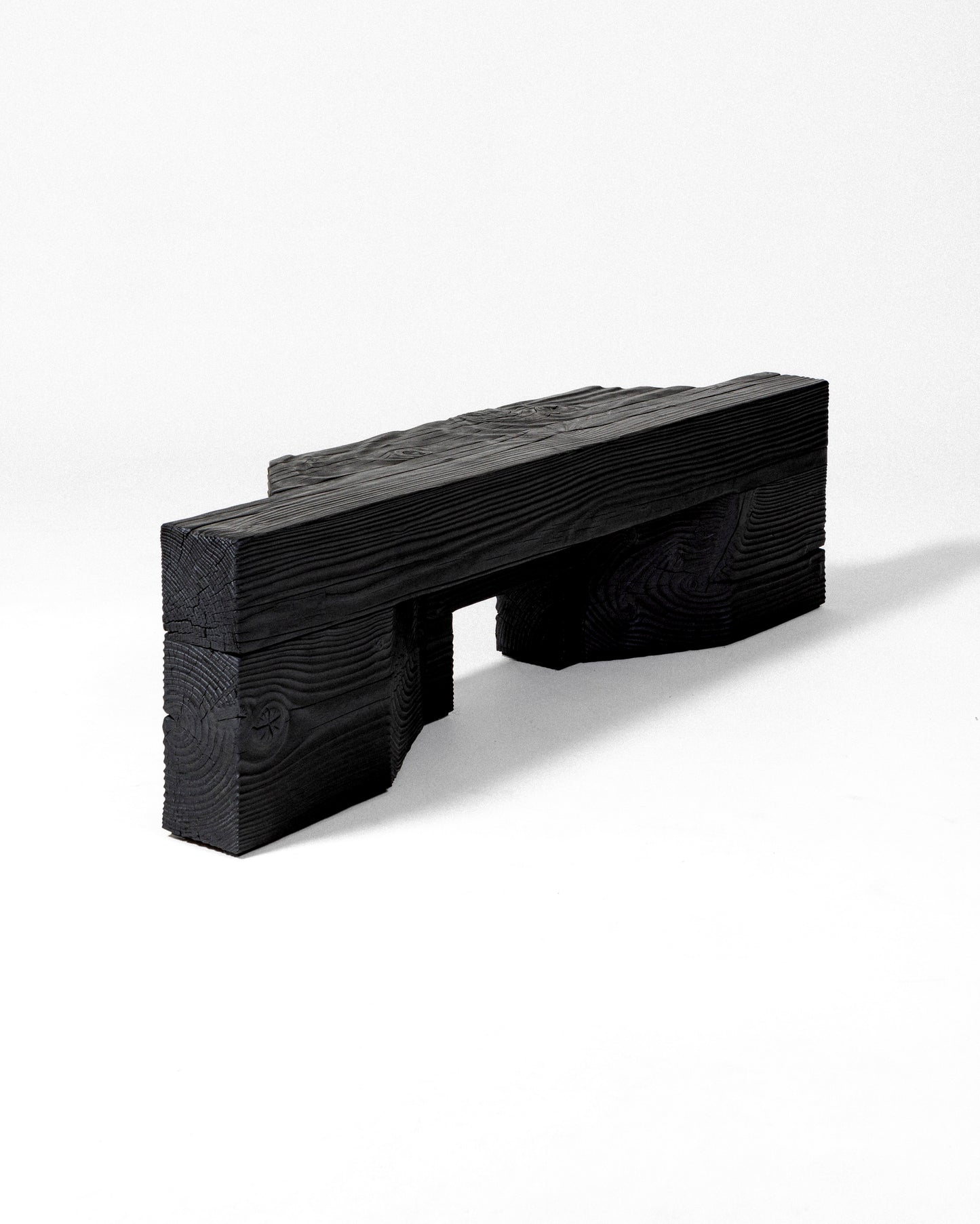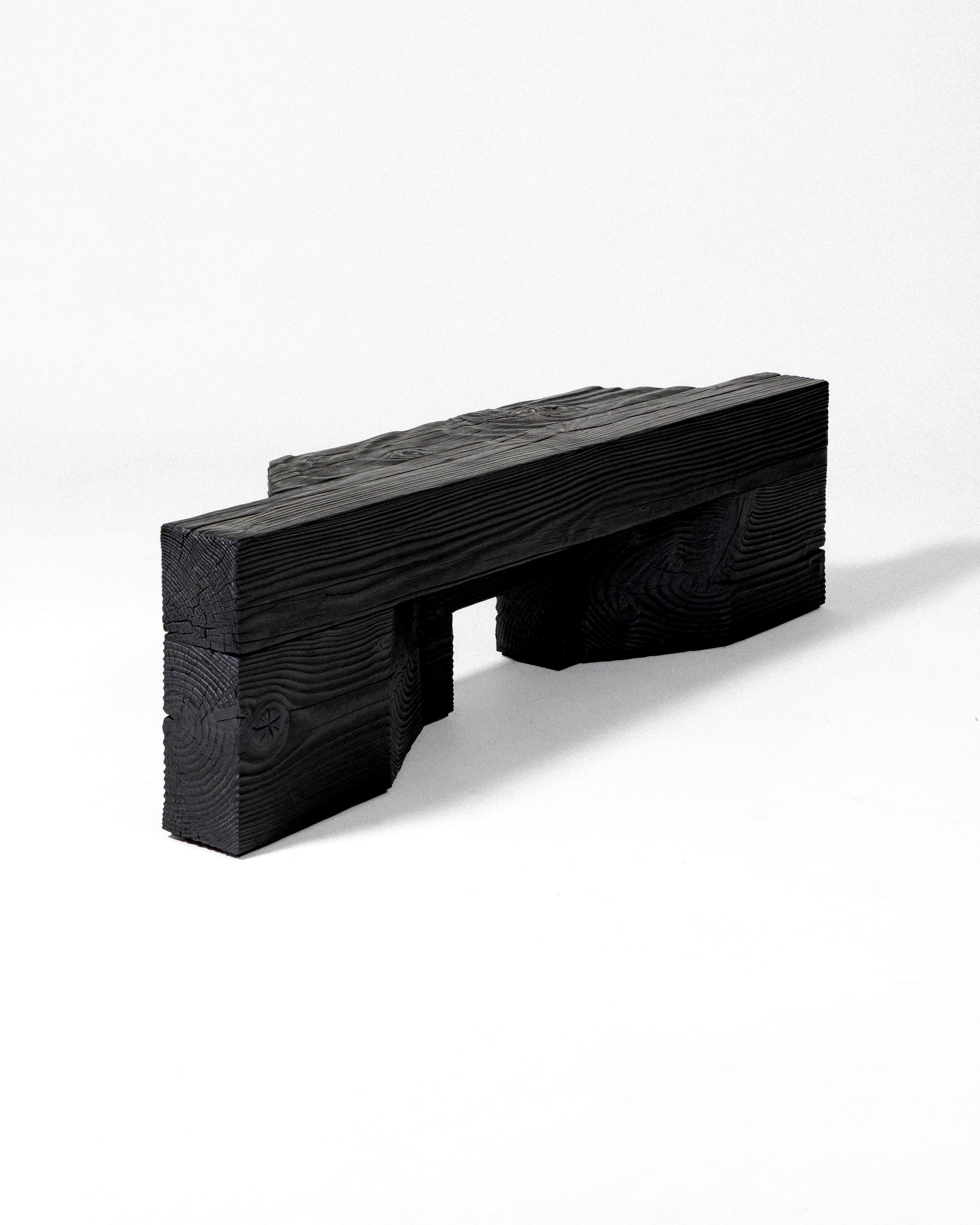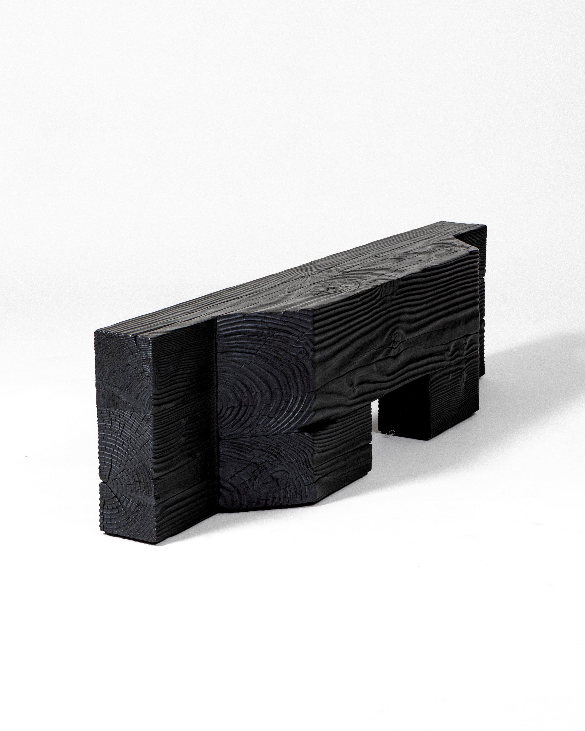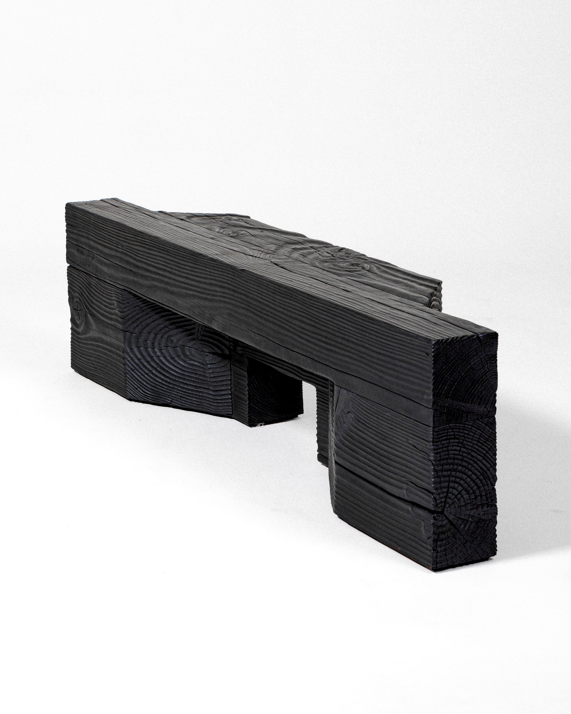Banc en bois noir "Glissiere 02" par Johan Viladrich.