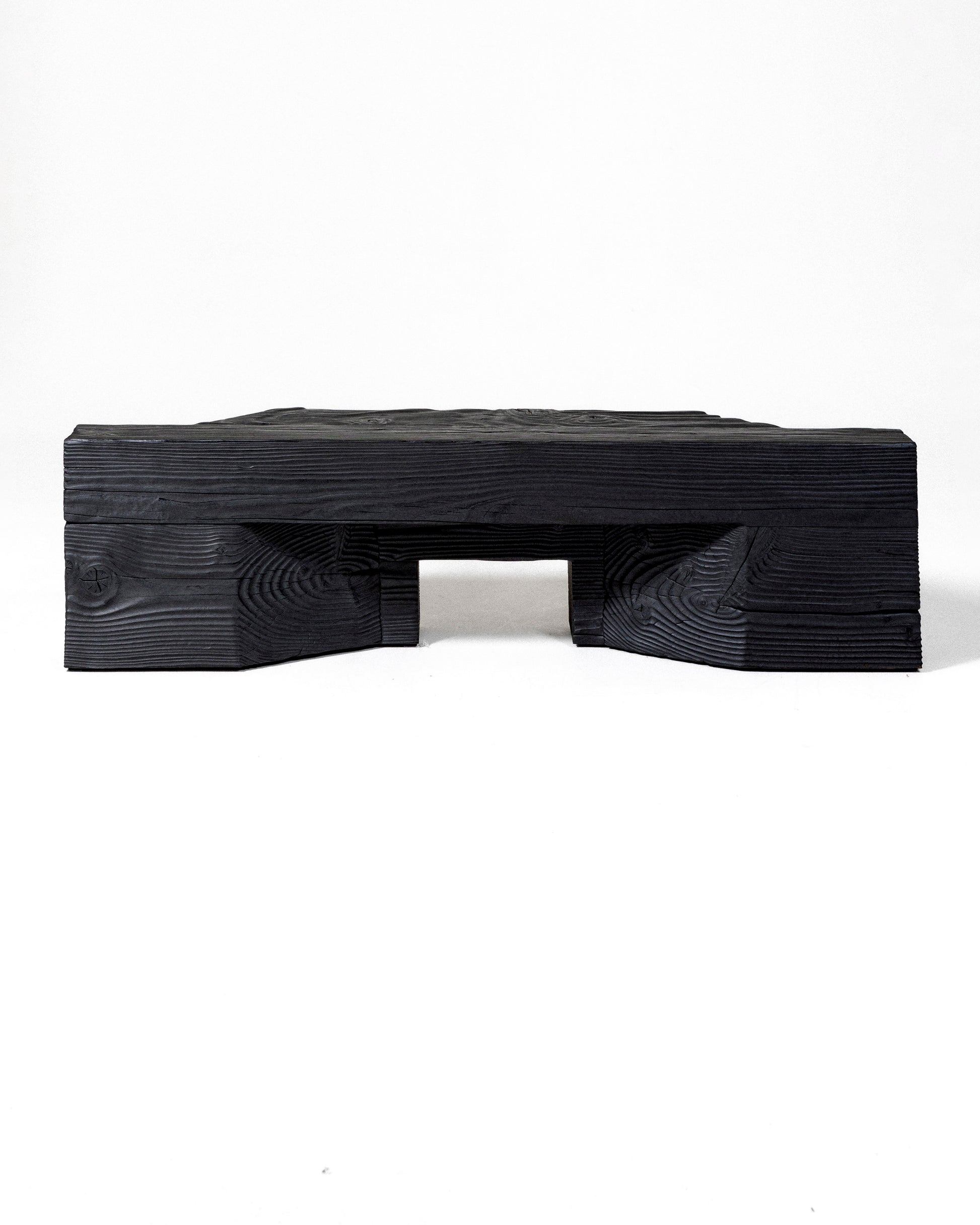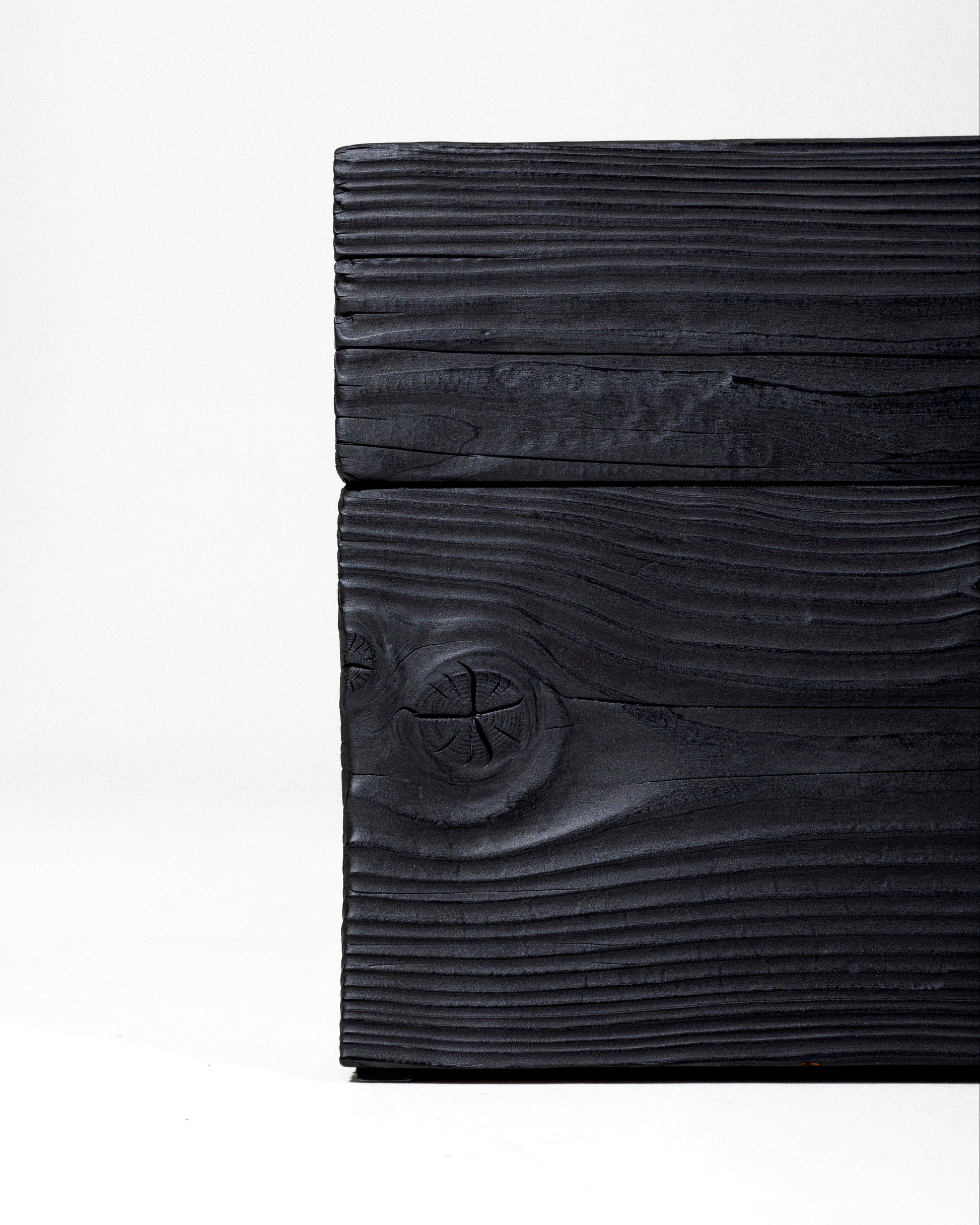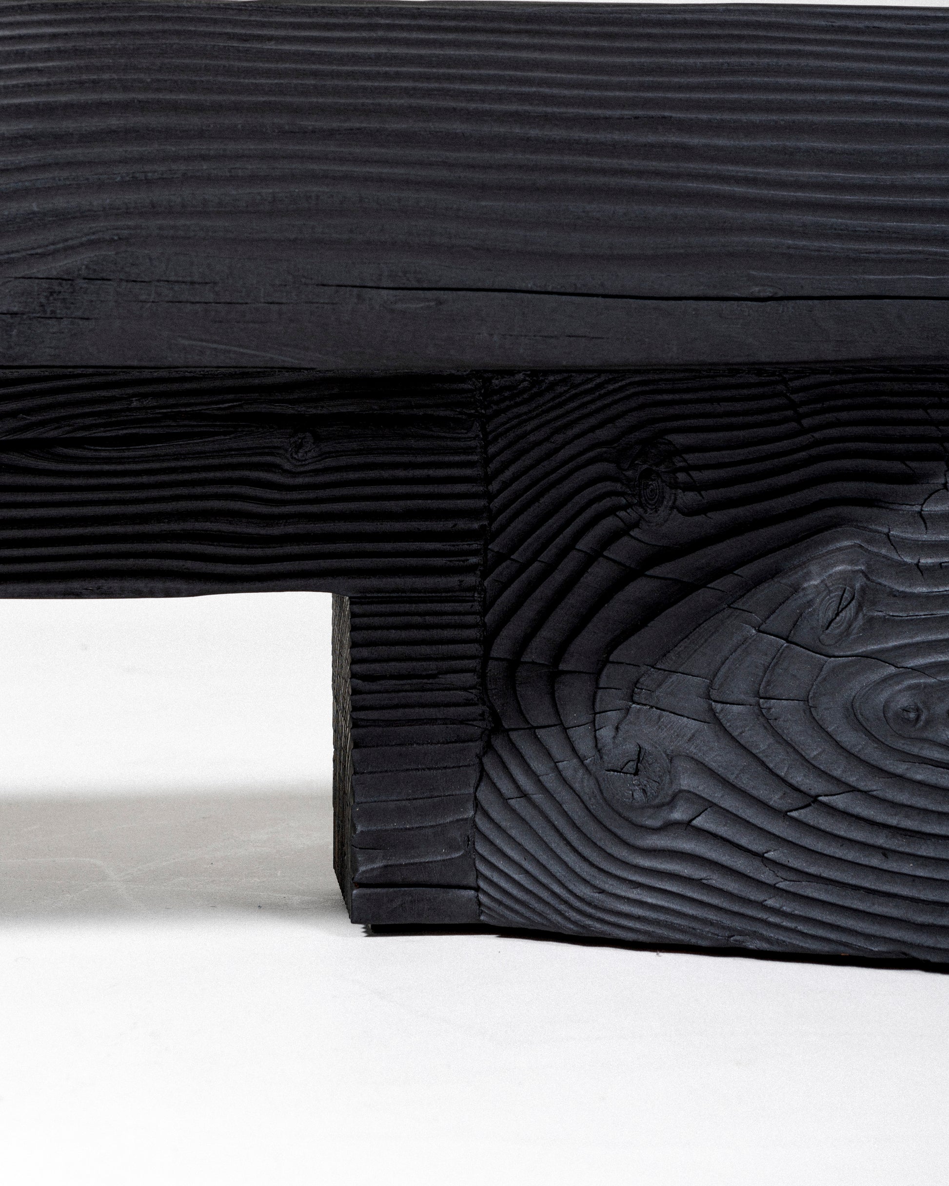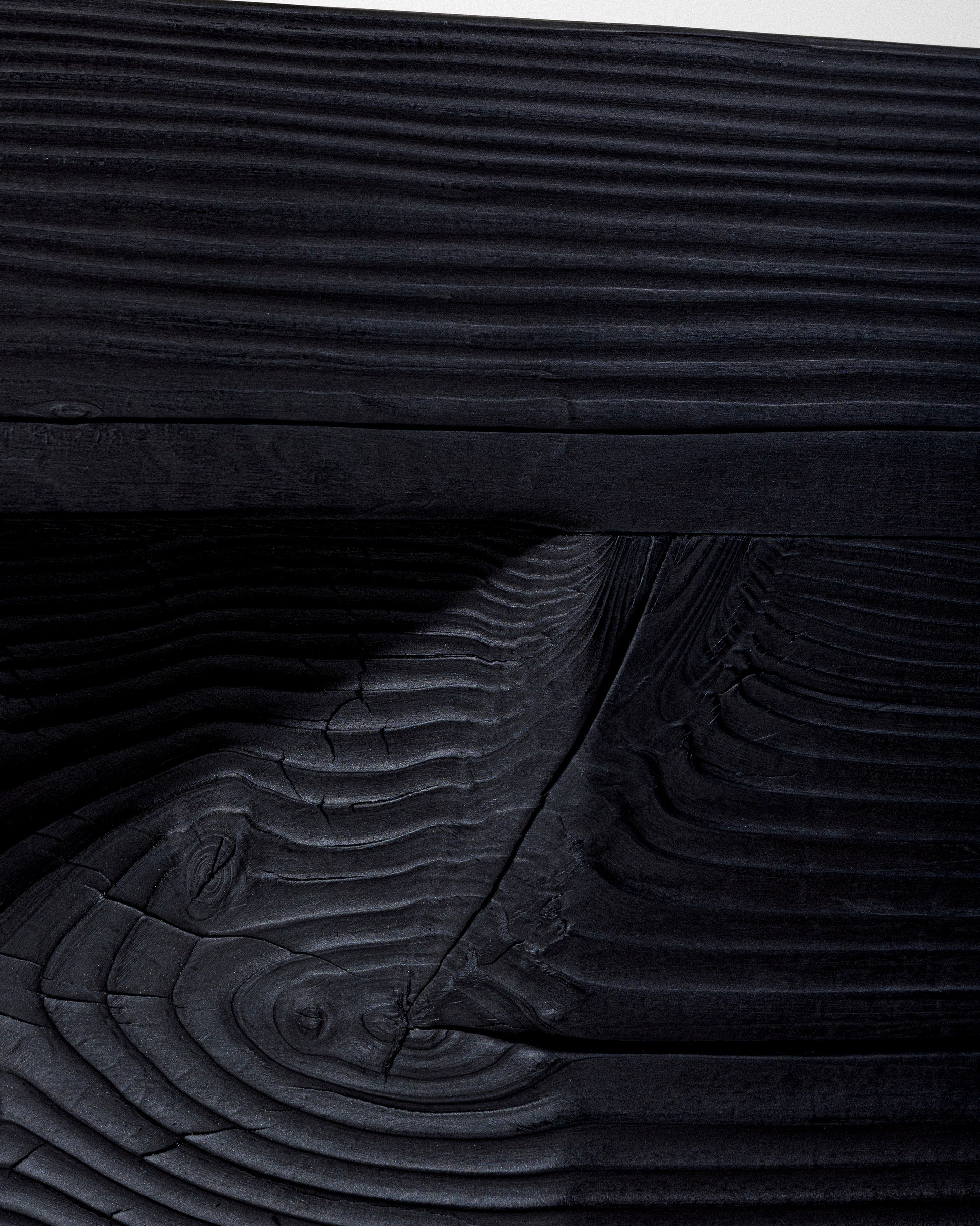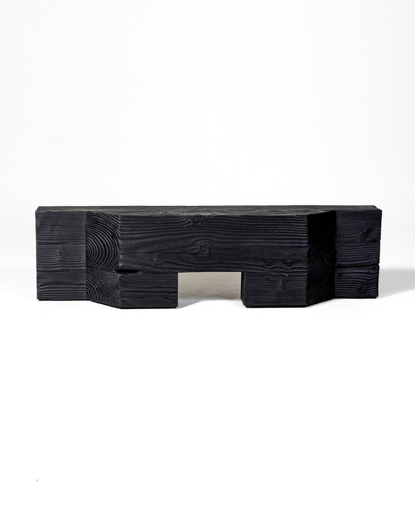 Banc en bois noir "Glissiere 02" par Johan Viladrich.