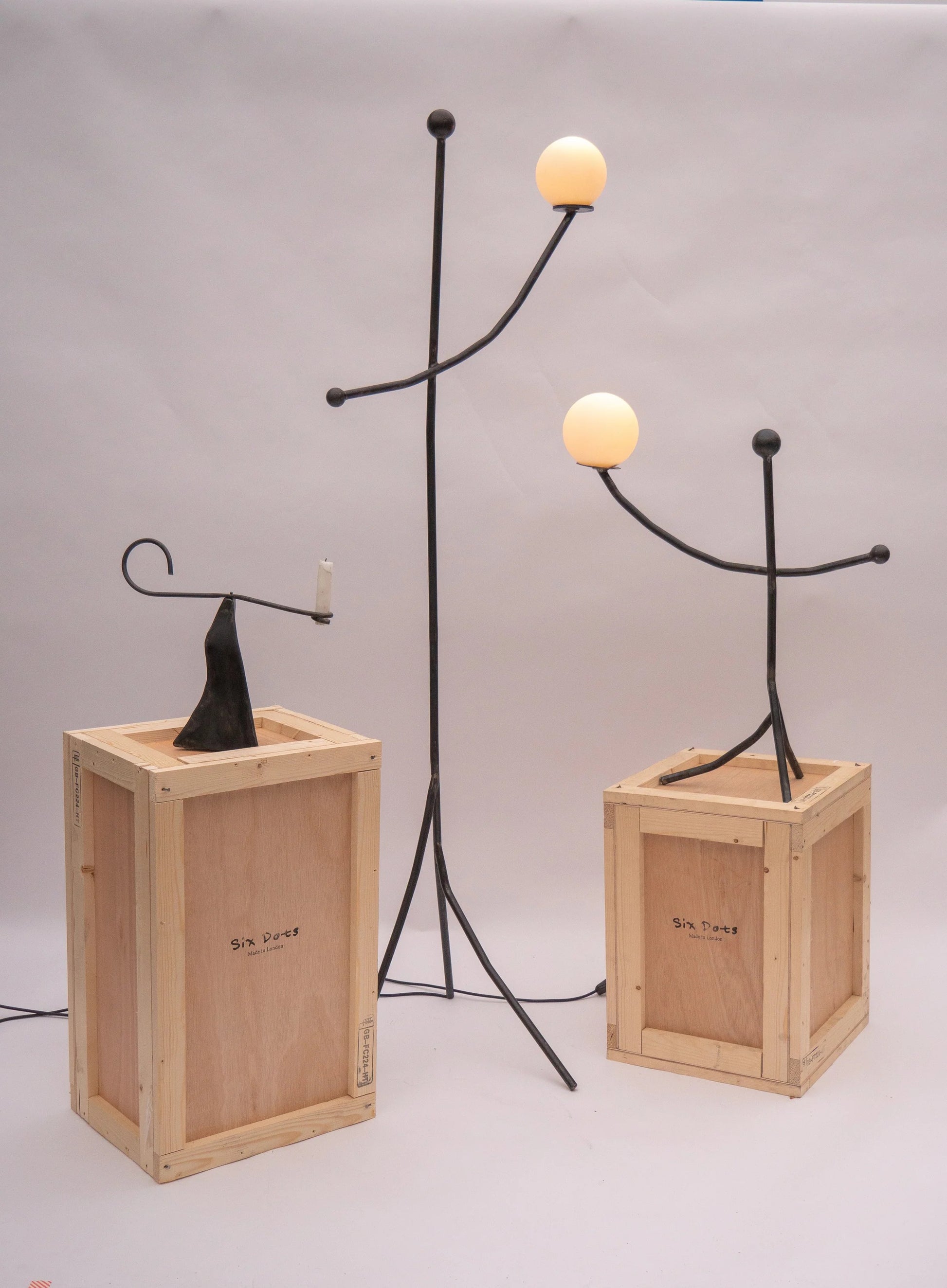 Un porte‑bougie en acier soudé. Balancing Act est une collection composée de deux lampes et d’un porte‑bougie. Inspirée par Calder’s Circus, elle dégage une sensation de joie naïve et de liberté ludique, invitant à l’interaction et à la spontanéité à travers des formes équilibrées et un design fantaisiste.