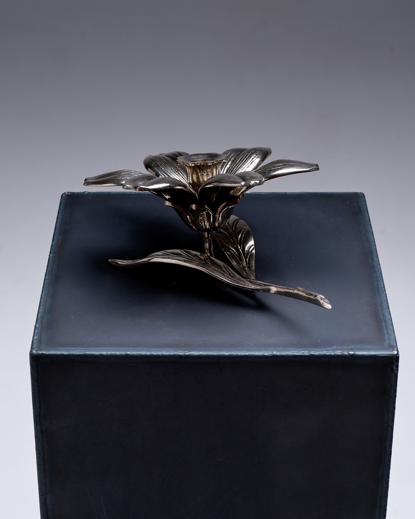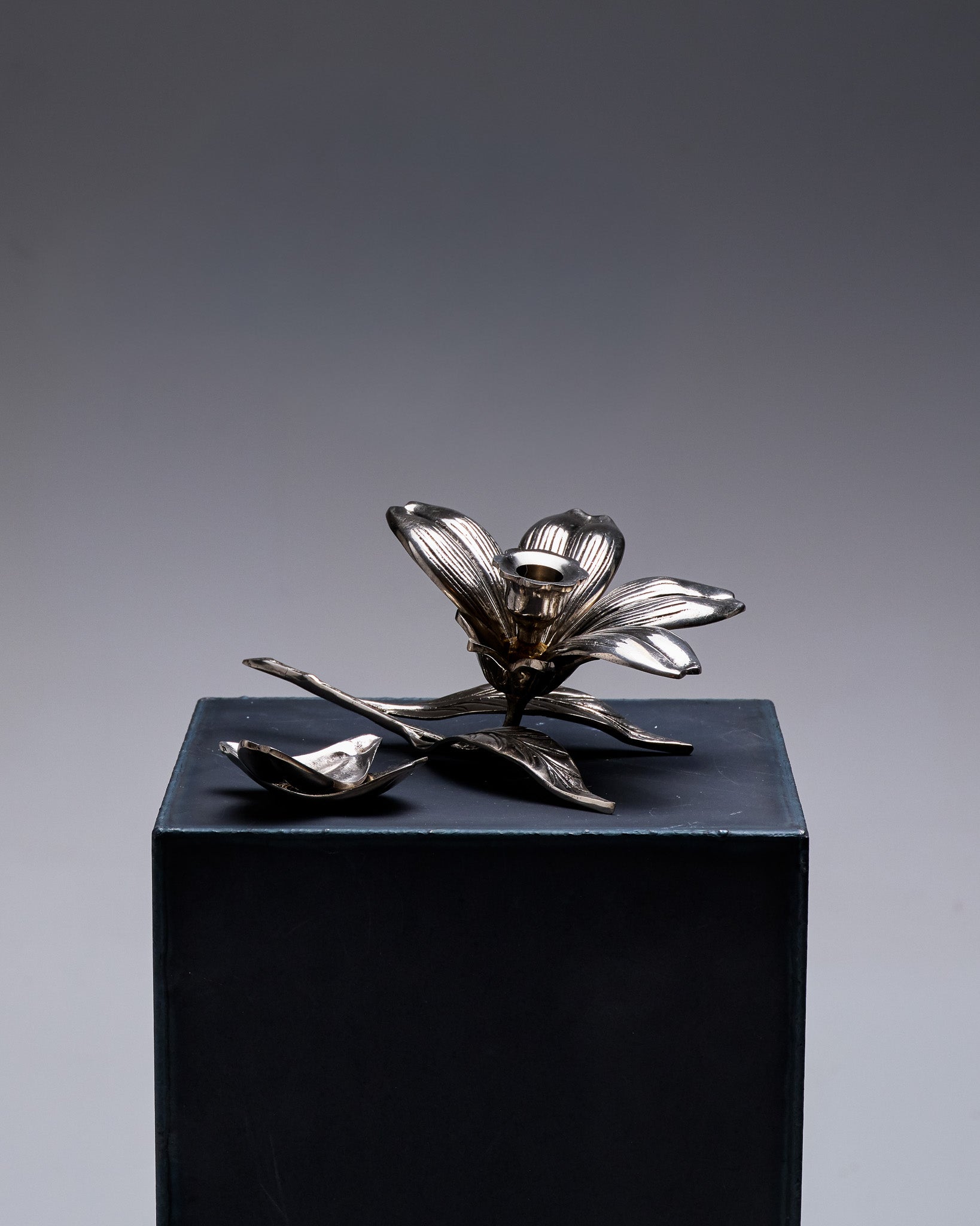 BOUGEOIR / CENDRIER FLORAL EN MÉTAL ARGENTÉ, 1970s