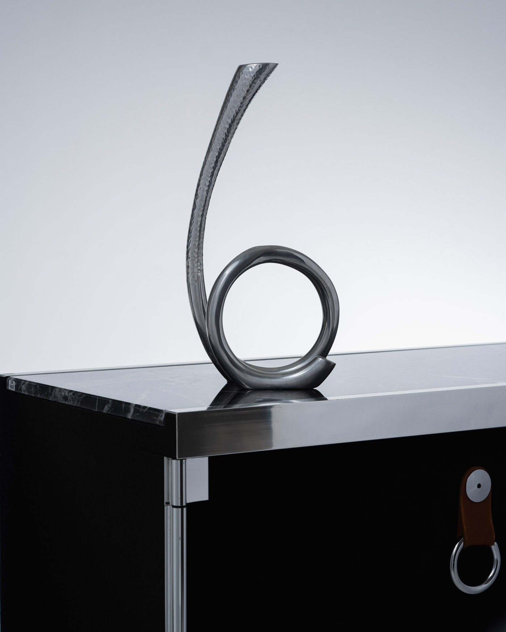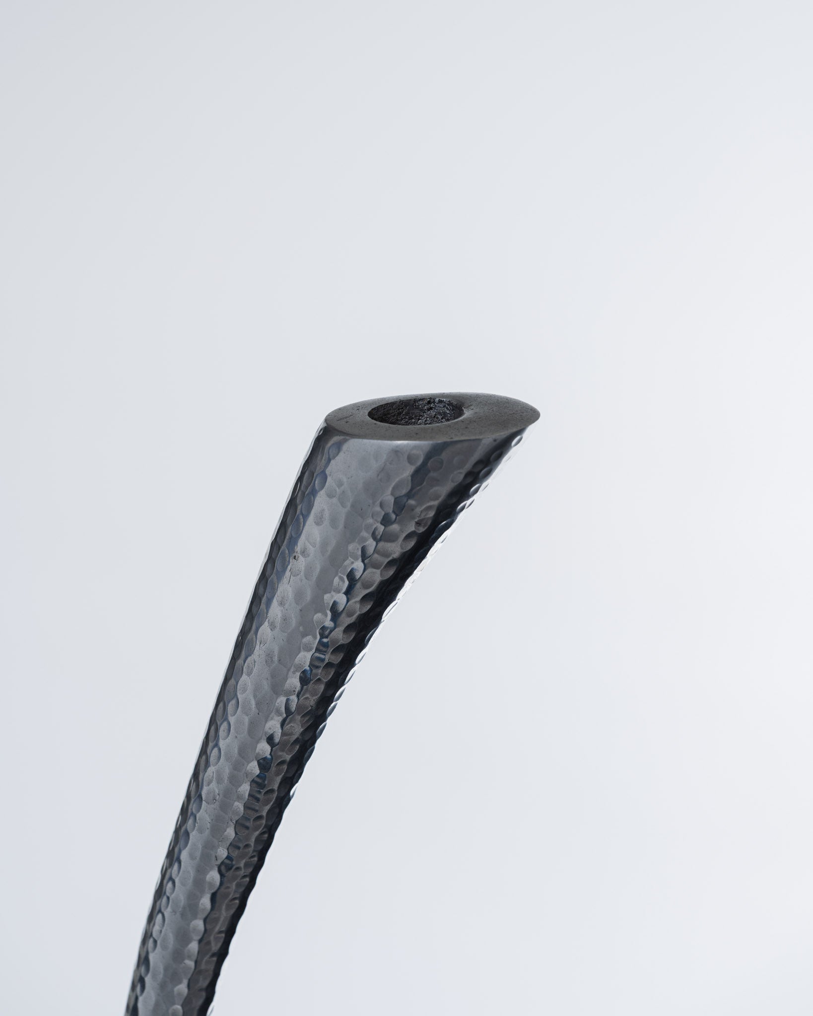 Bougeoir Curly en métal martelé, design caractéristique de l’esthétique décorative des années 1970. Bel état de conservation, présentant de légères traces d’usage sur la surface du métal.