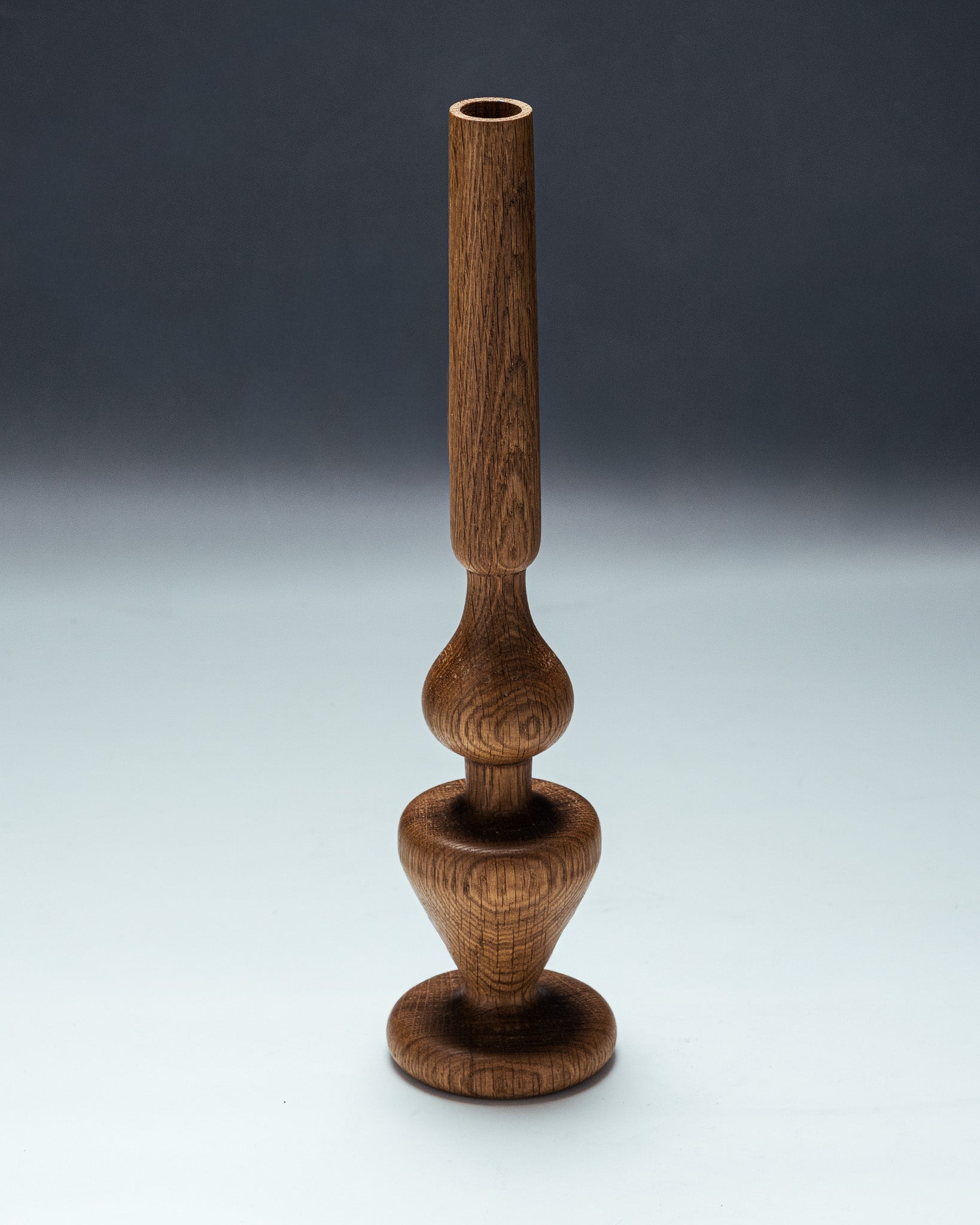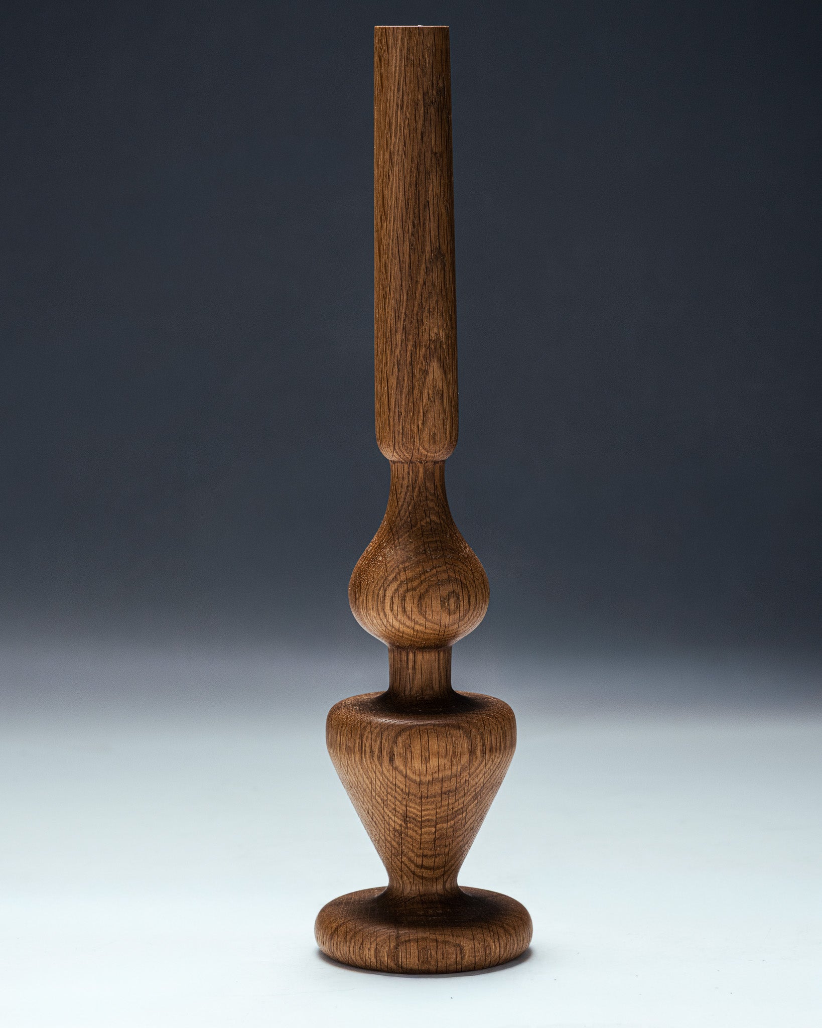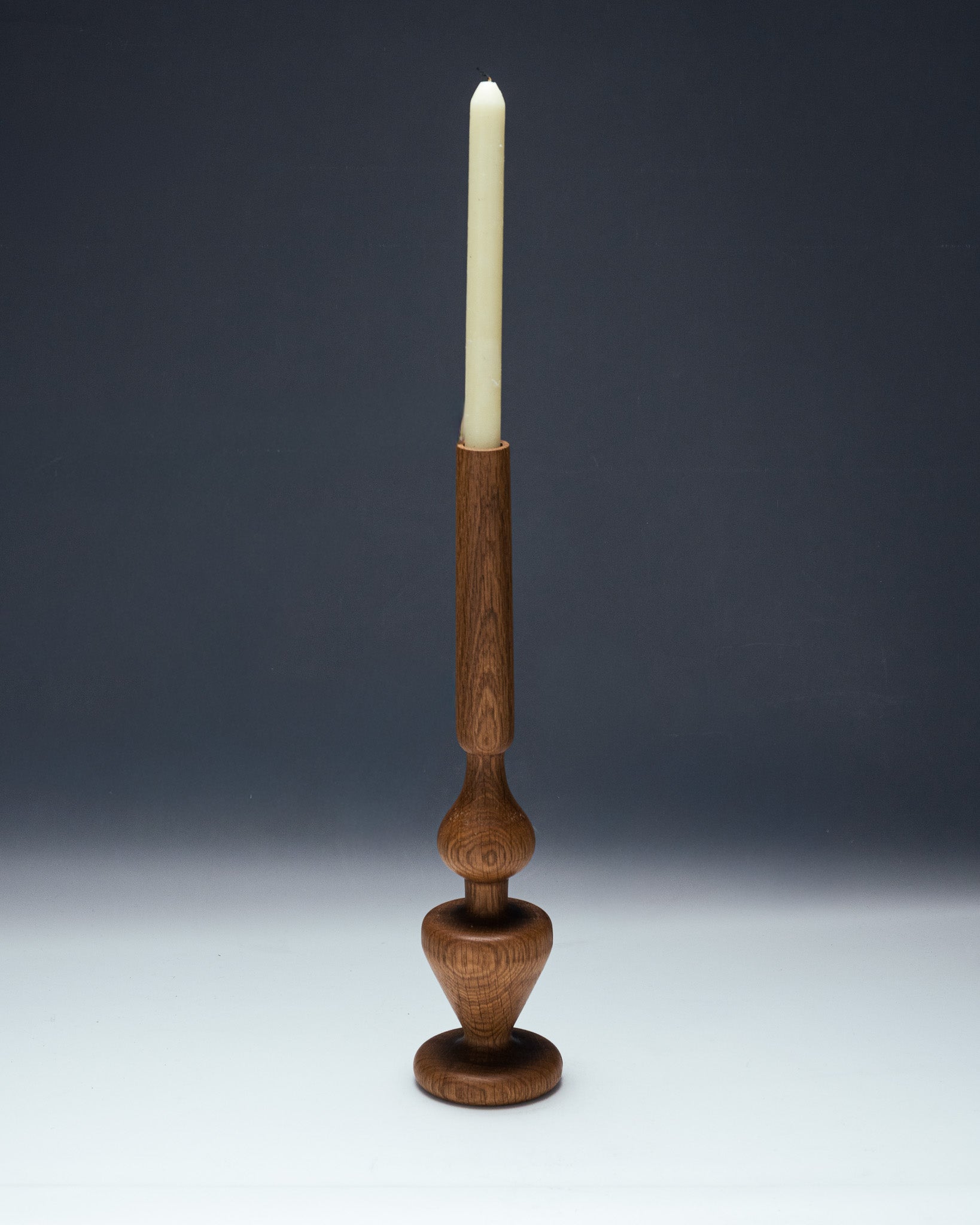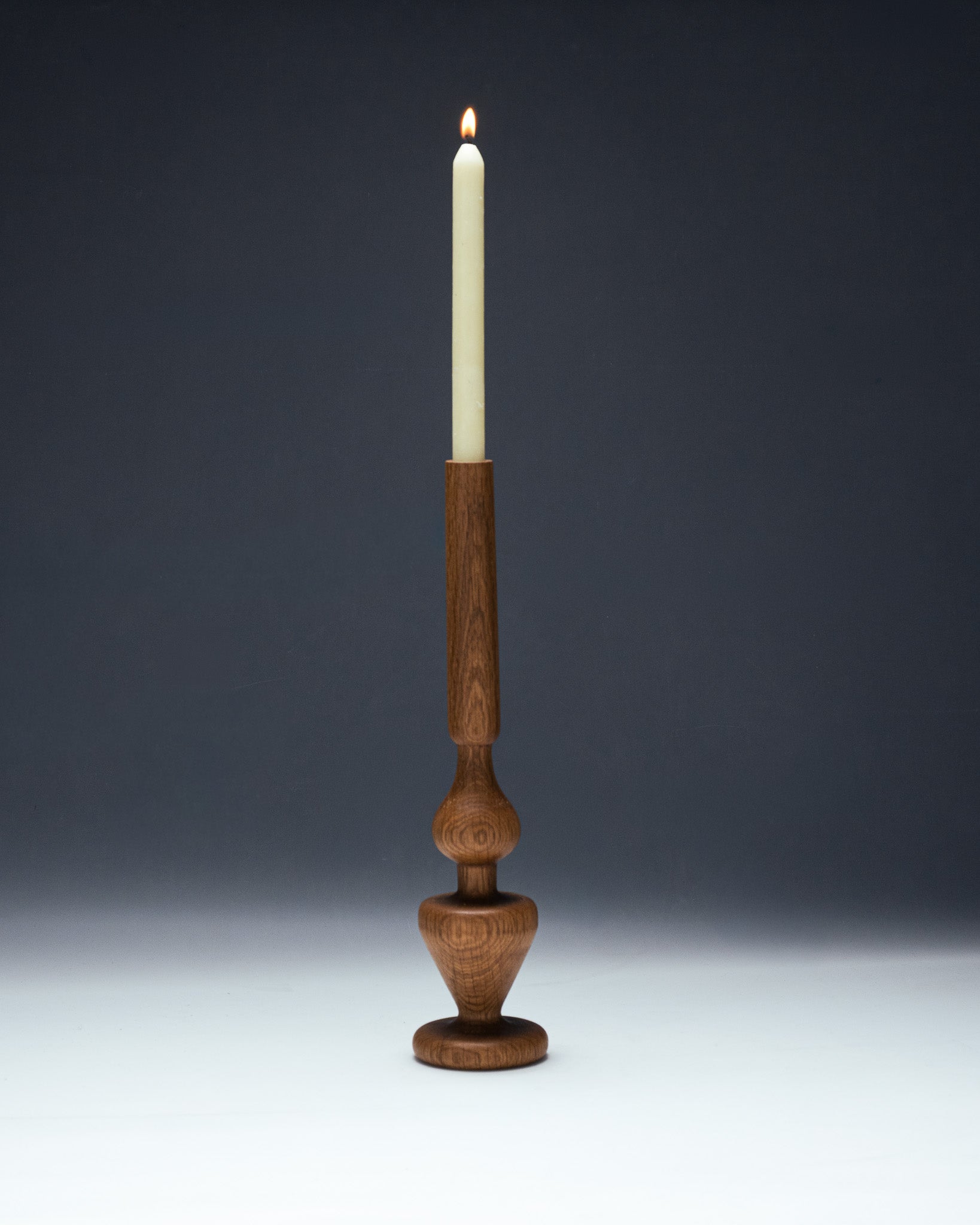 Bougeoir en chêne sculpté par le designer Hugo Periesse. Entièrement réalisé à la main avec du bois de récupération. À noter que le veinage du bois peut varier d’une pièce à l’autre.