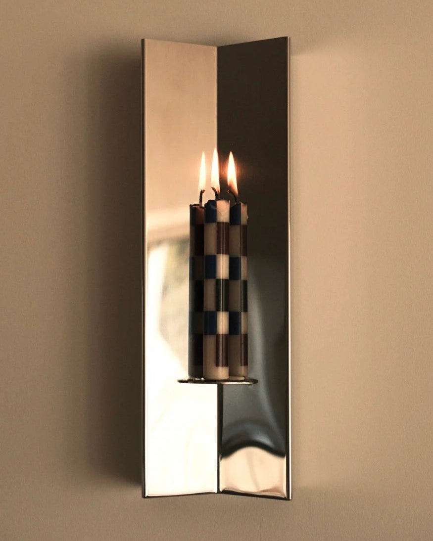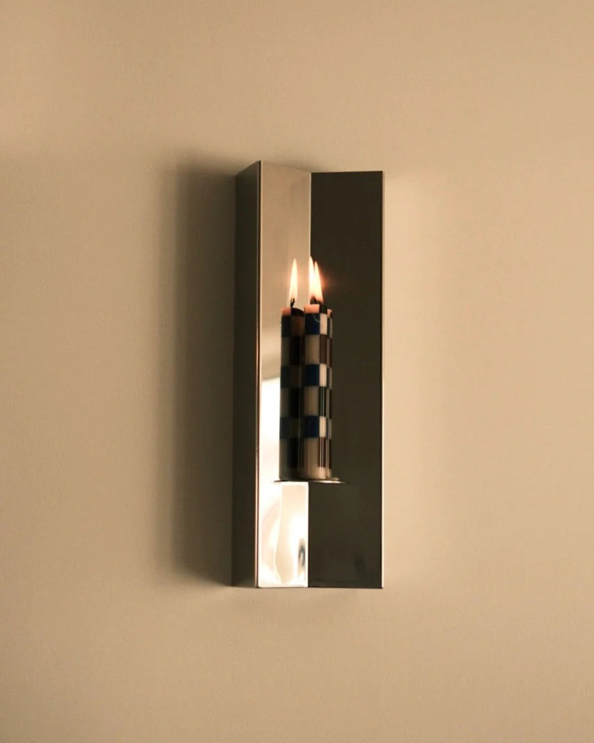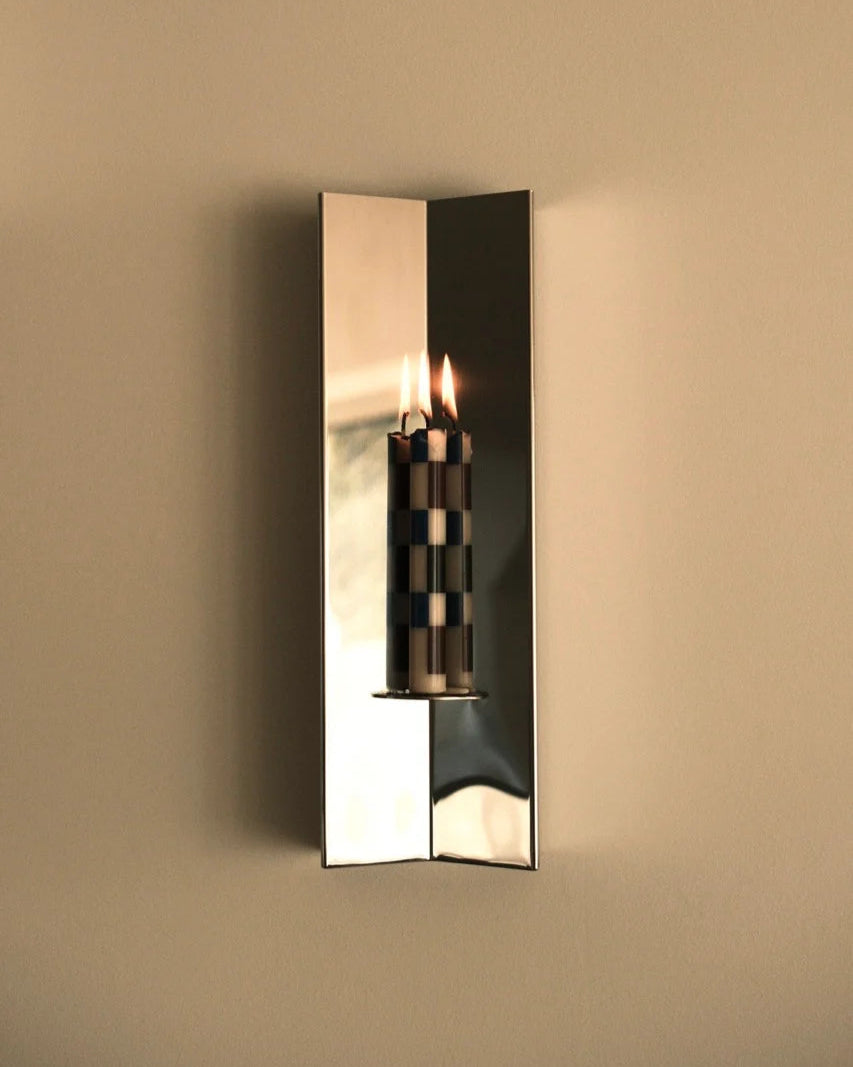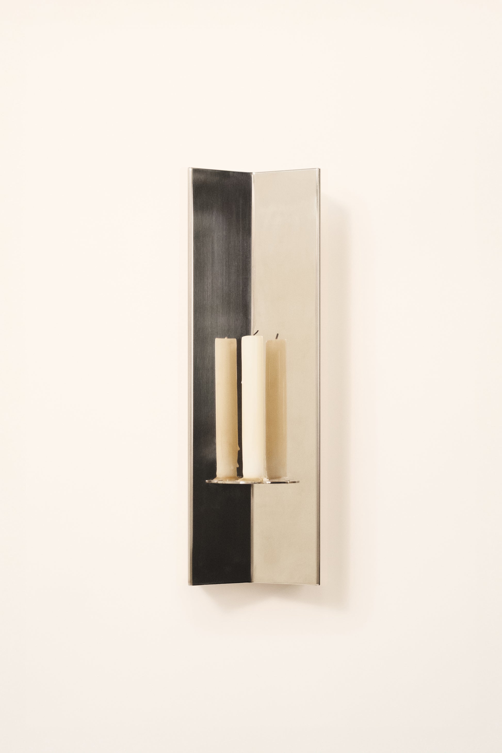 Bougie Arrow en acier poli, par Violaine d'Harcourt. Fabriquée à la main à Lisbonne, Portugal. La bougie n'est pas incluse.