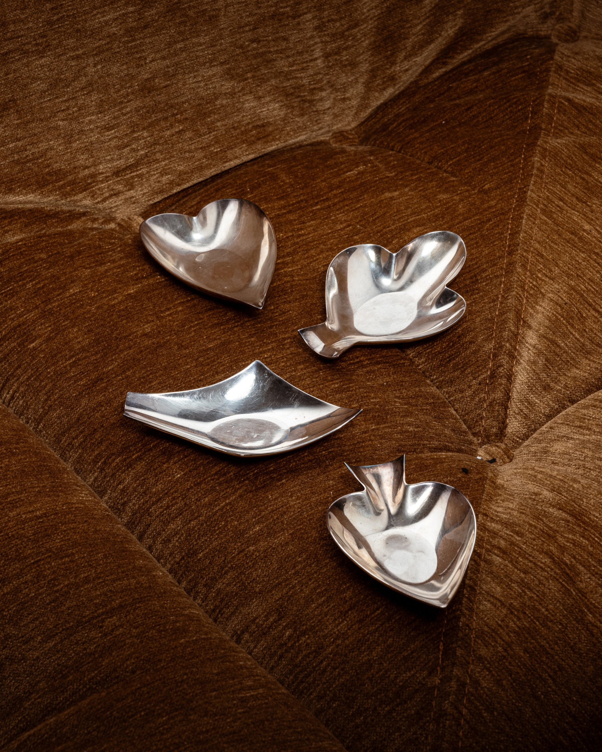 Cendrier en métal plaqué argent en forme de pique façon couleur de carte à jouer. Poinçon visible sous la base. Très bon état.
