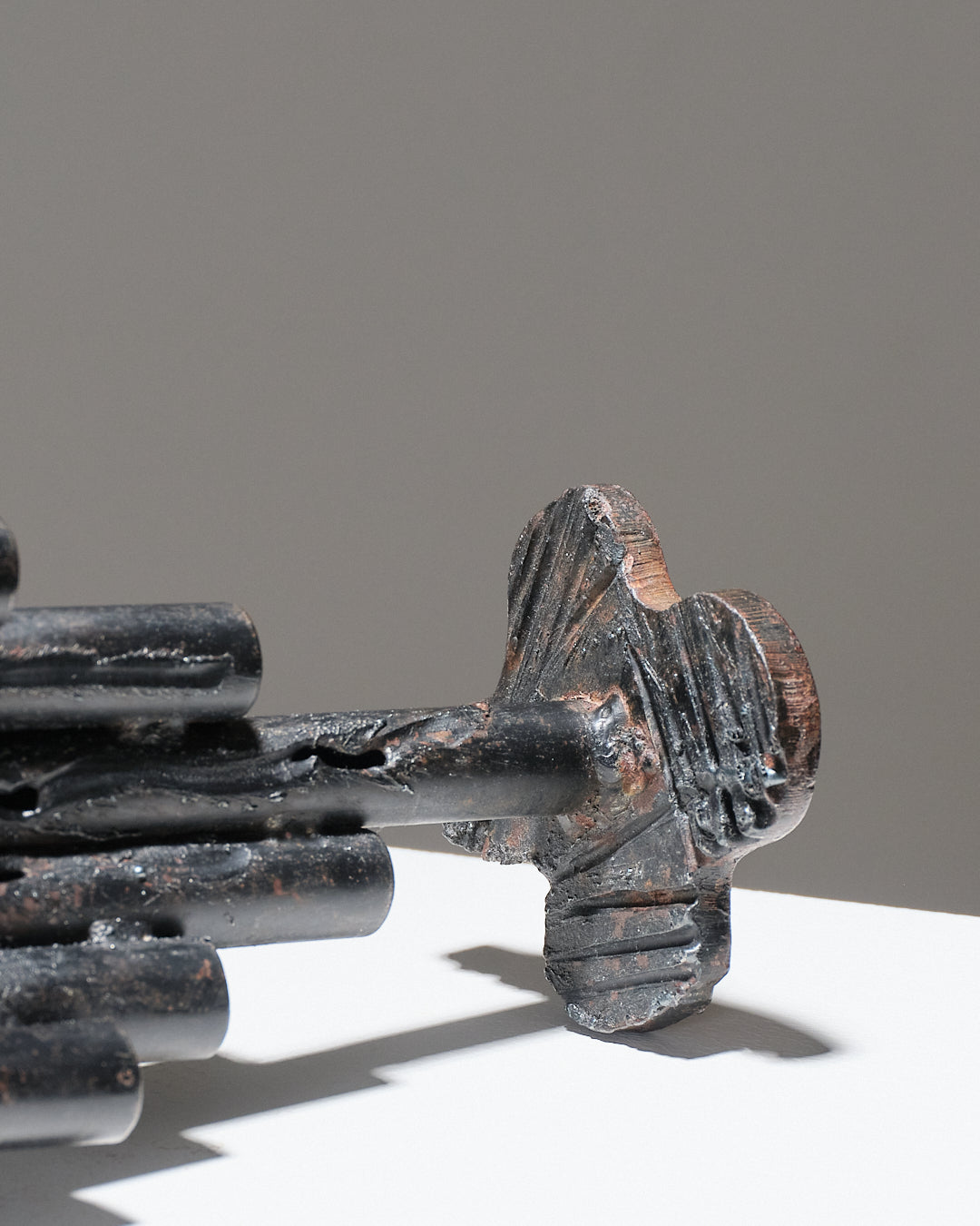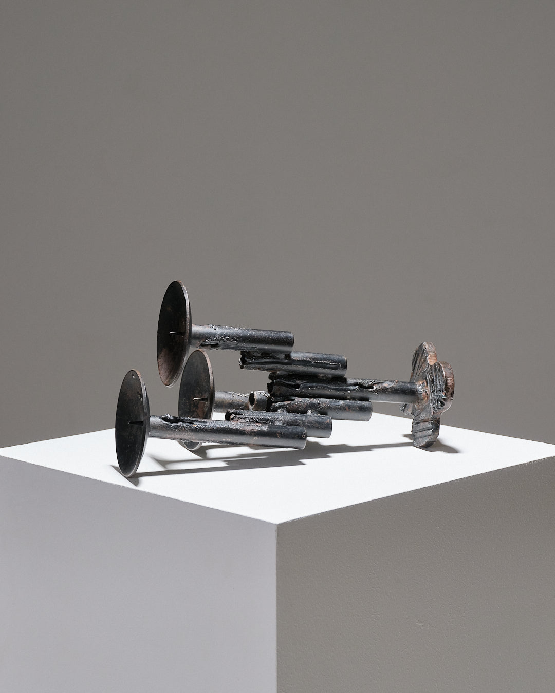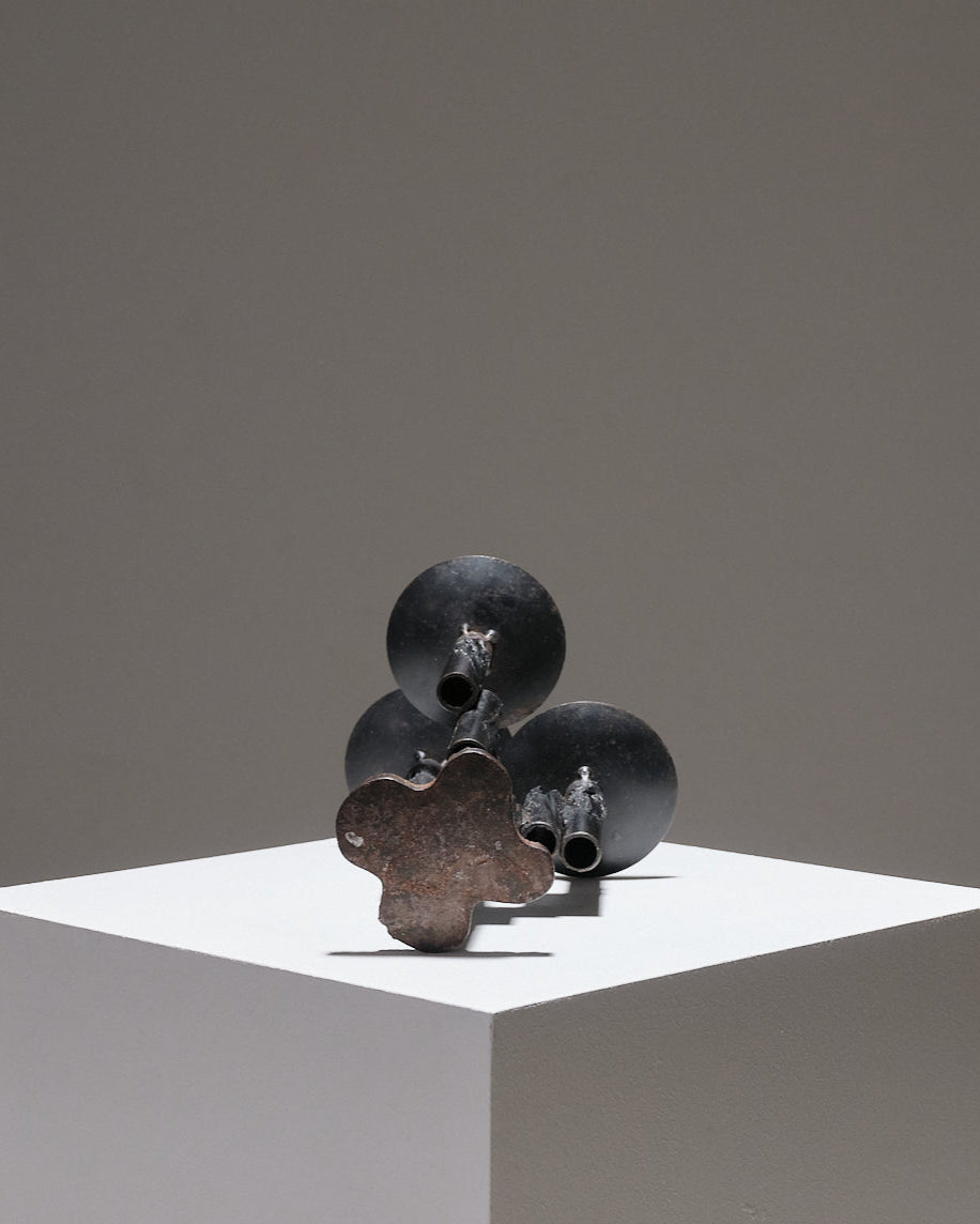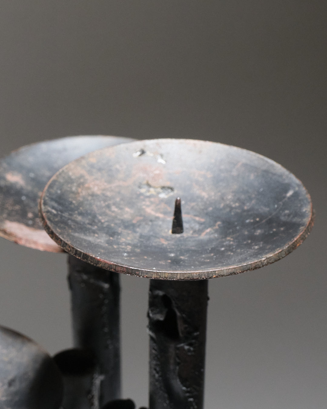 Chandelier 3 feux brutaliste pique cierge en fer forgé, ferronnerie artisanale. Années 1960. très bel état.
