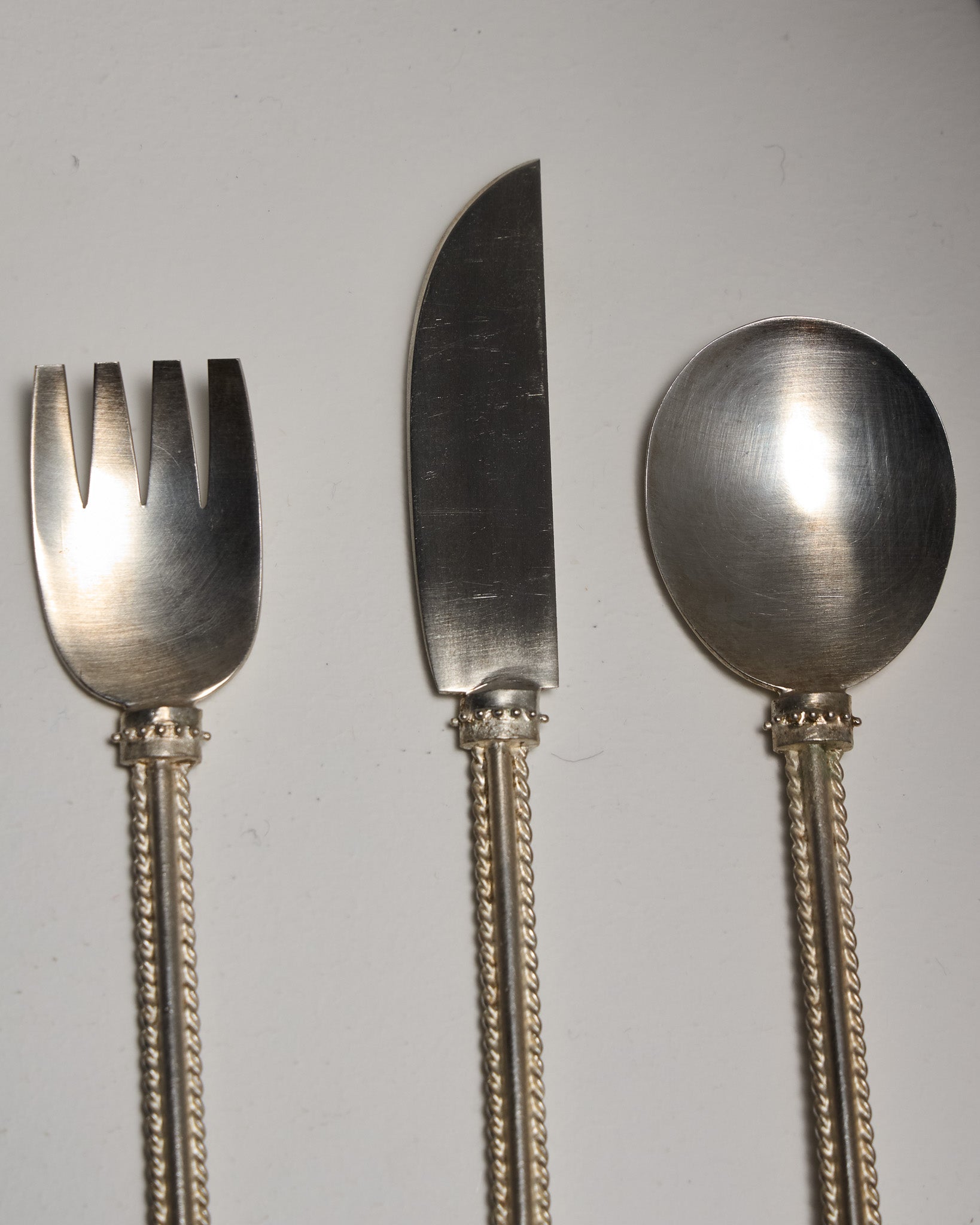 ENSEMBLE DE COUVERTS EN LAITON PLAQUÉ DE LA DESIGNER NATALIA CRIADO. FABRIQUÉ EN ITALIE.