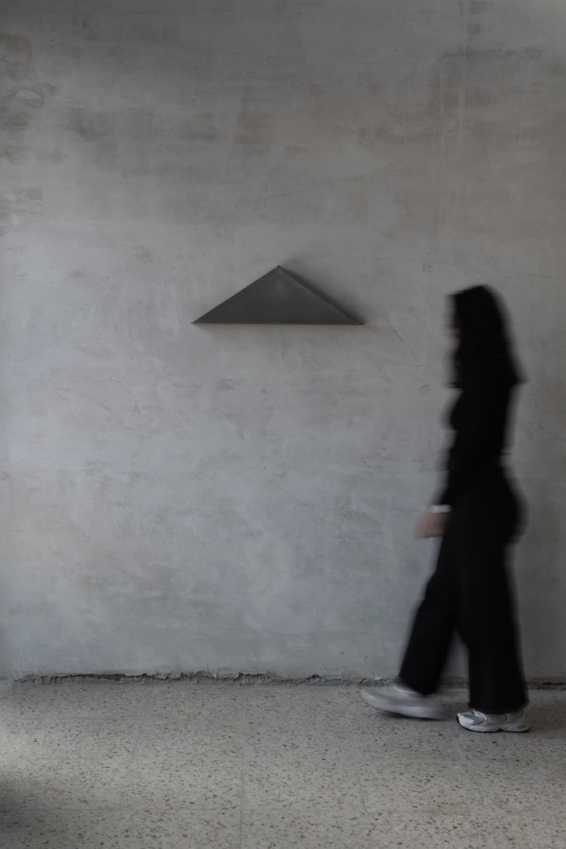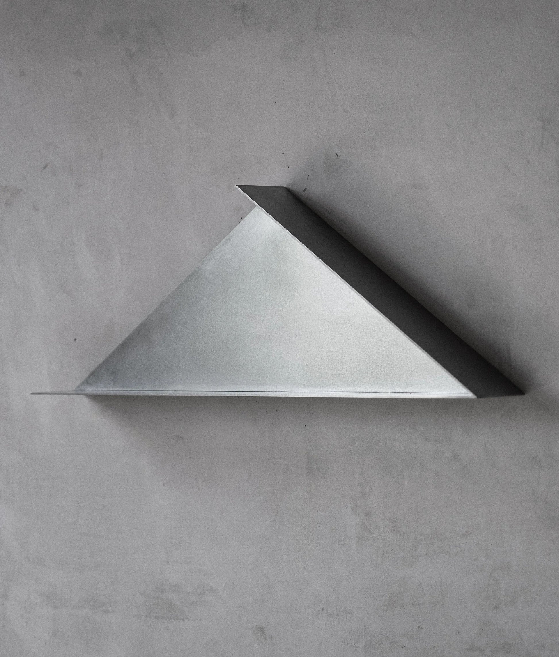 The Front est une étagère en édition limitée. Elle s’inspire du fronton des temples romains ainsi que de la tradition des encadrements de fenêtres italiennes. Réalisée en acier inoxydable par un artisan, elle peut être utilisée comme petite étagère ou comme élément décoratif architectural.