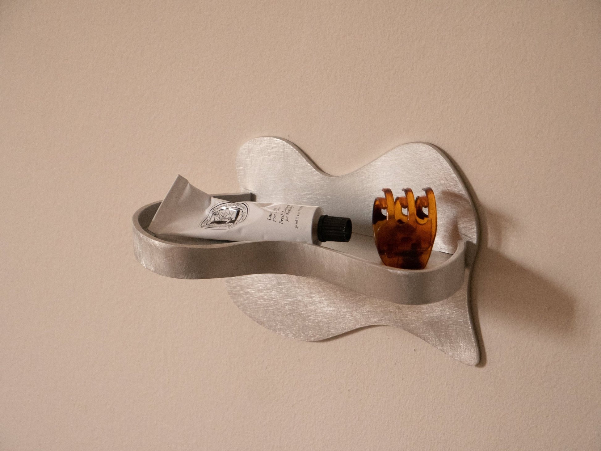 Cette petite étagère est conçue pour accueillir un flacon de savon ou offrir un espace dédié aux objets du quotidien, tels que les clés, en les mettant en valeur avec sobriété. Par son format compact et sa ligne épurée, elle contribue à structurer le mur et à en révéler toute la dimension décorative.