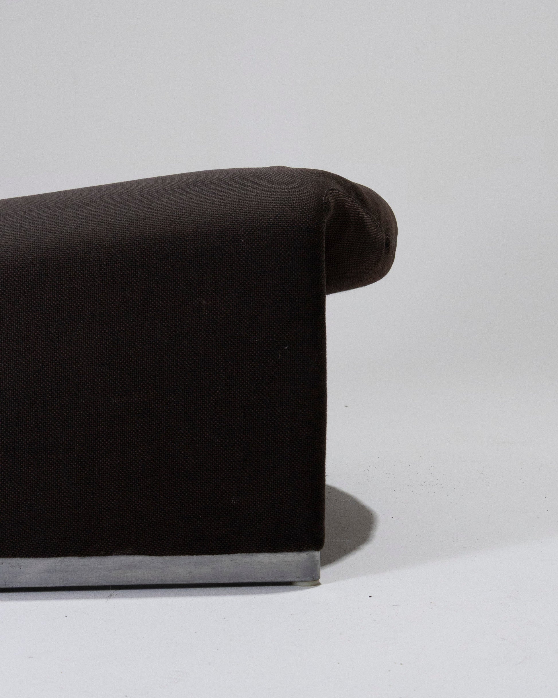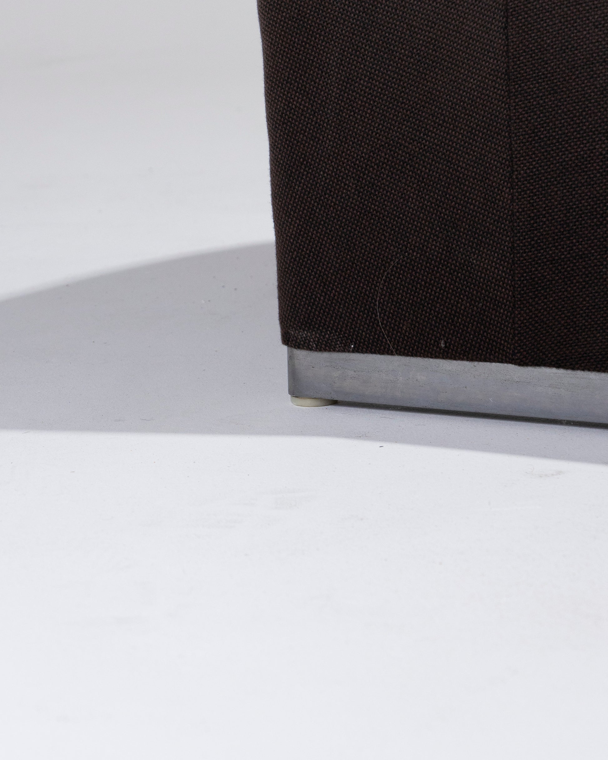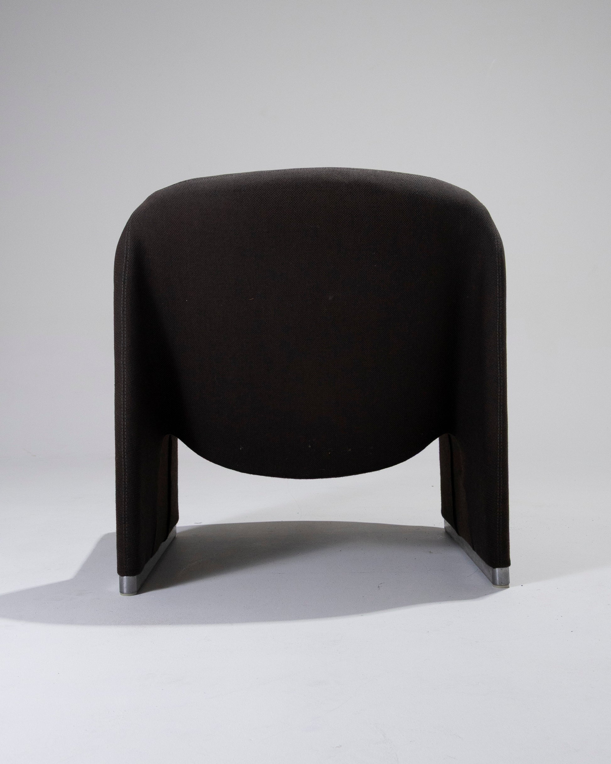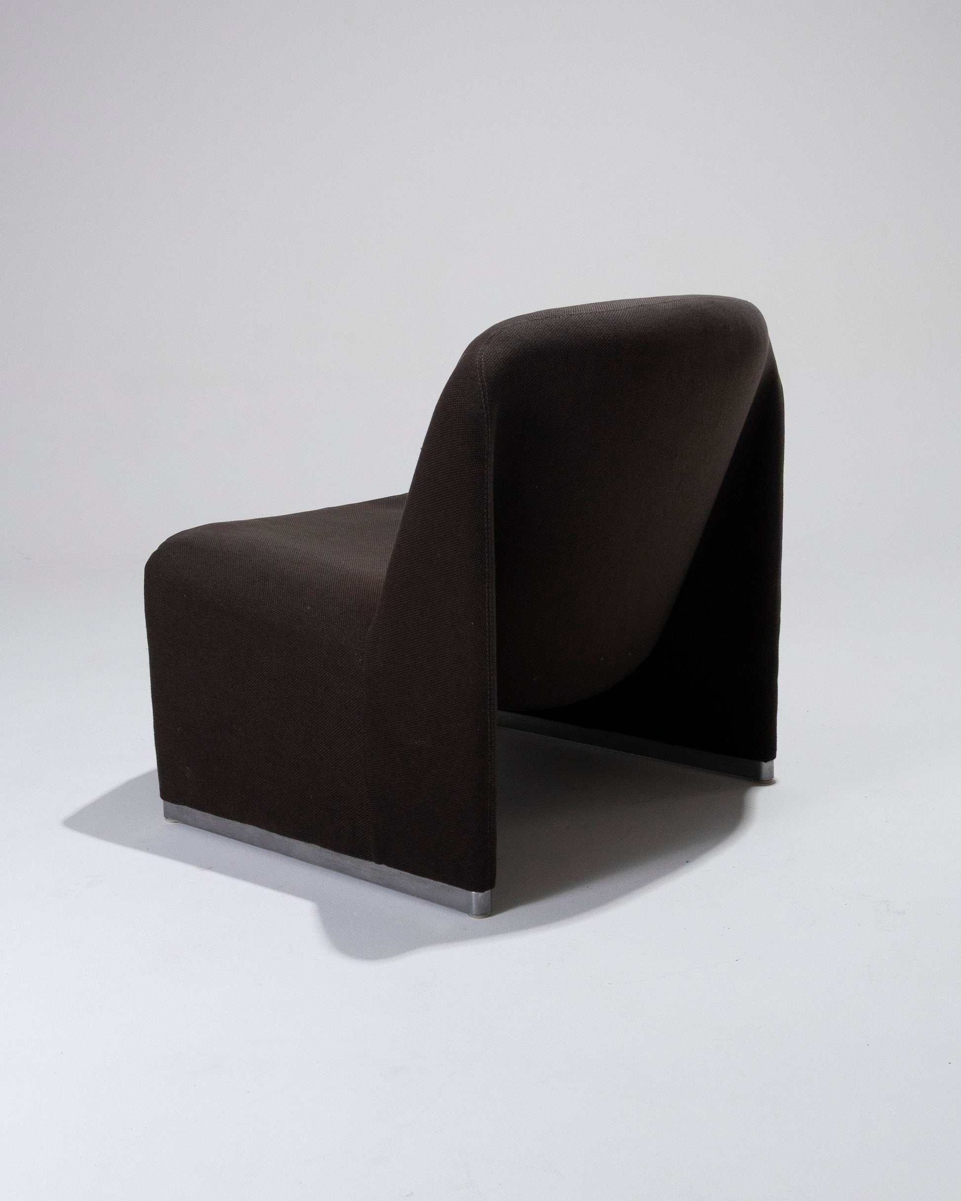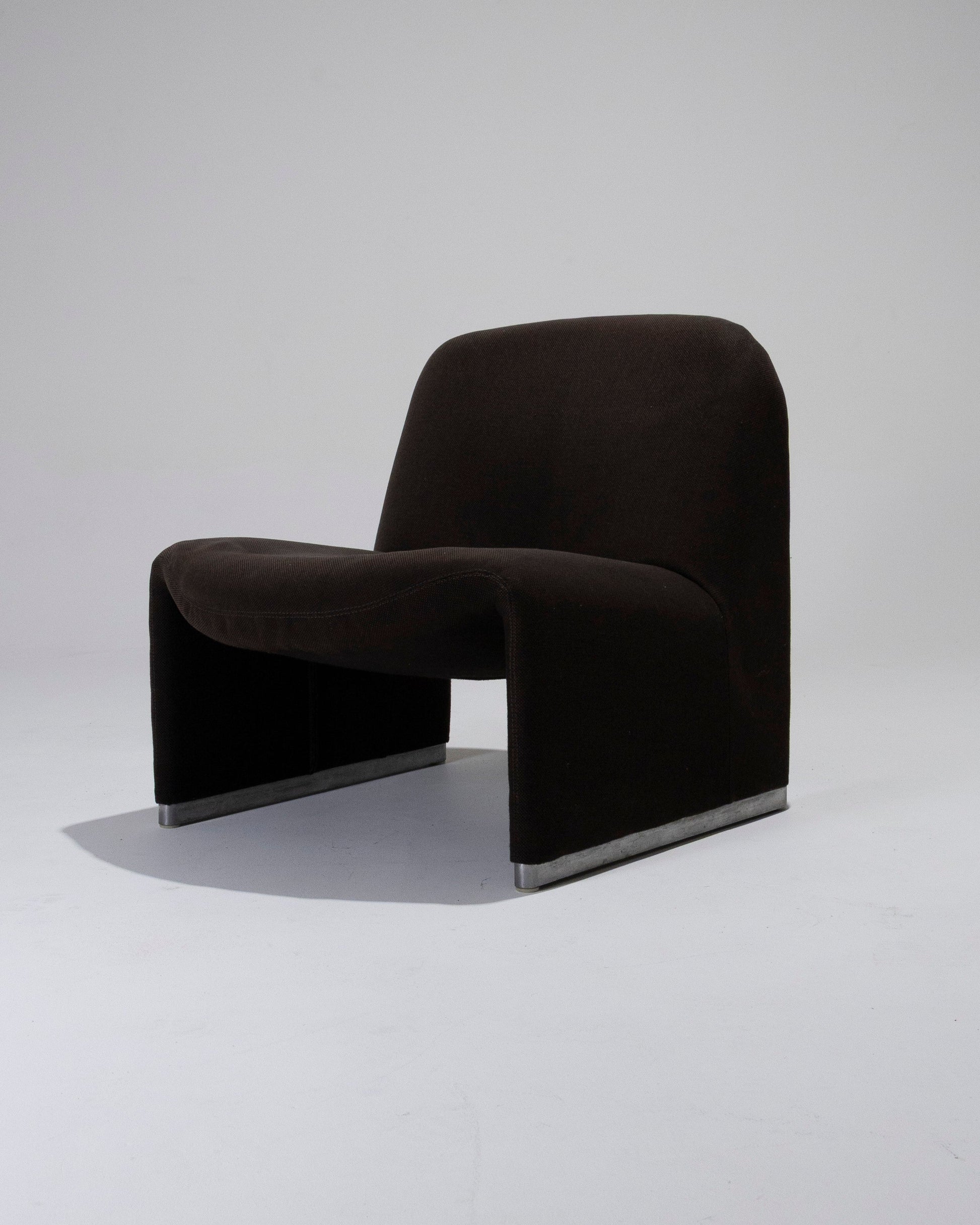 Fauteuil Alky en tissu marron d'origine par Giancarlo Piretti pour Artifort dans les années 1970. La structure est recouverte de mousse thermoformée et le piètement est en aluminium. Des traces d'usage sont visibles sur le tissu.