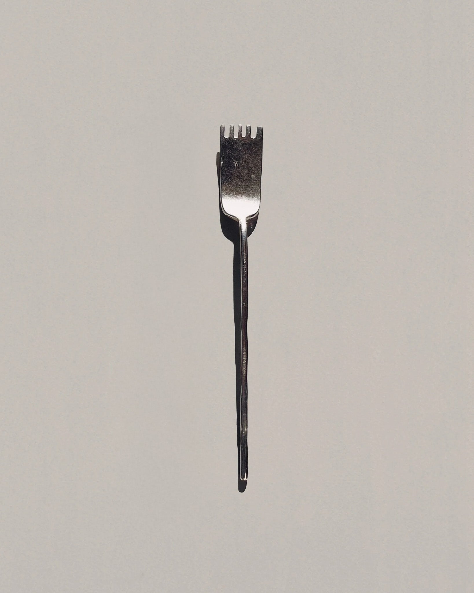 Petite fourchette de service à thé "Artifact" en argent sterling 925 finition satinée, par Alexandra Denat. Fait main en France. Vendue à l'unité.