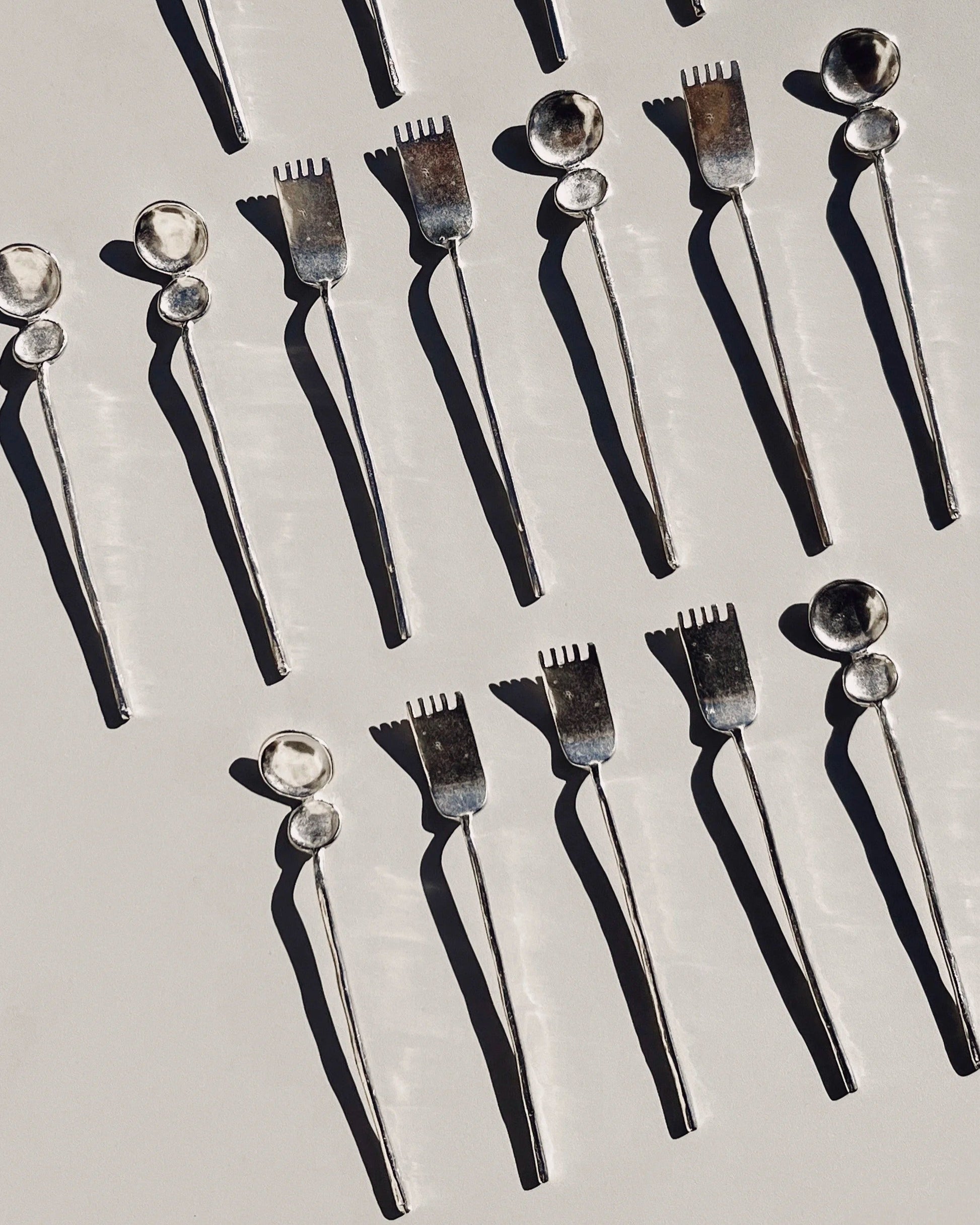 Inspirée d’ornements archaïques, sa présence évoque un objet trouvé, chargé de sens. Pensée pour éveiller l’attention aux matières et aux gestes, l'argent se patine avec le temps et l’usage.