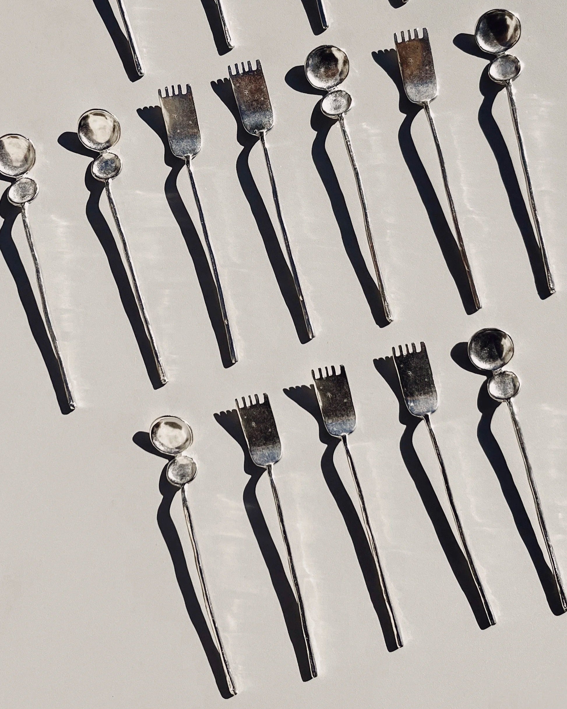 Inspirée d’ornements archaïques, sa présence évoque un objet trouvé, chargé de sens. Pensée pour éveiller l’attention aux matières et aux gestes, l'argent se patine avec le temps et l’usage.