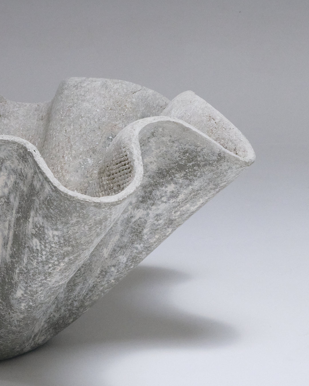 Jardinière « Oreille d’éléphant » par Willy Guhl, vers 1950. Conçue en Eternit, matériau stable à texture fibreuse à base de ciment. Forme corolle, belle patine d’origine. Bon état général avec traces d’usage normal liées à la fonction de la pièce.