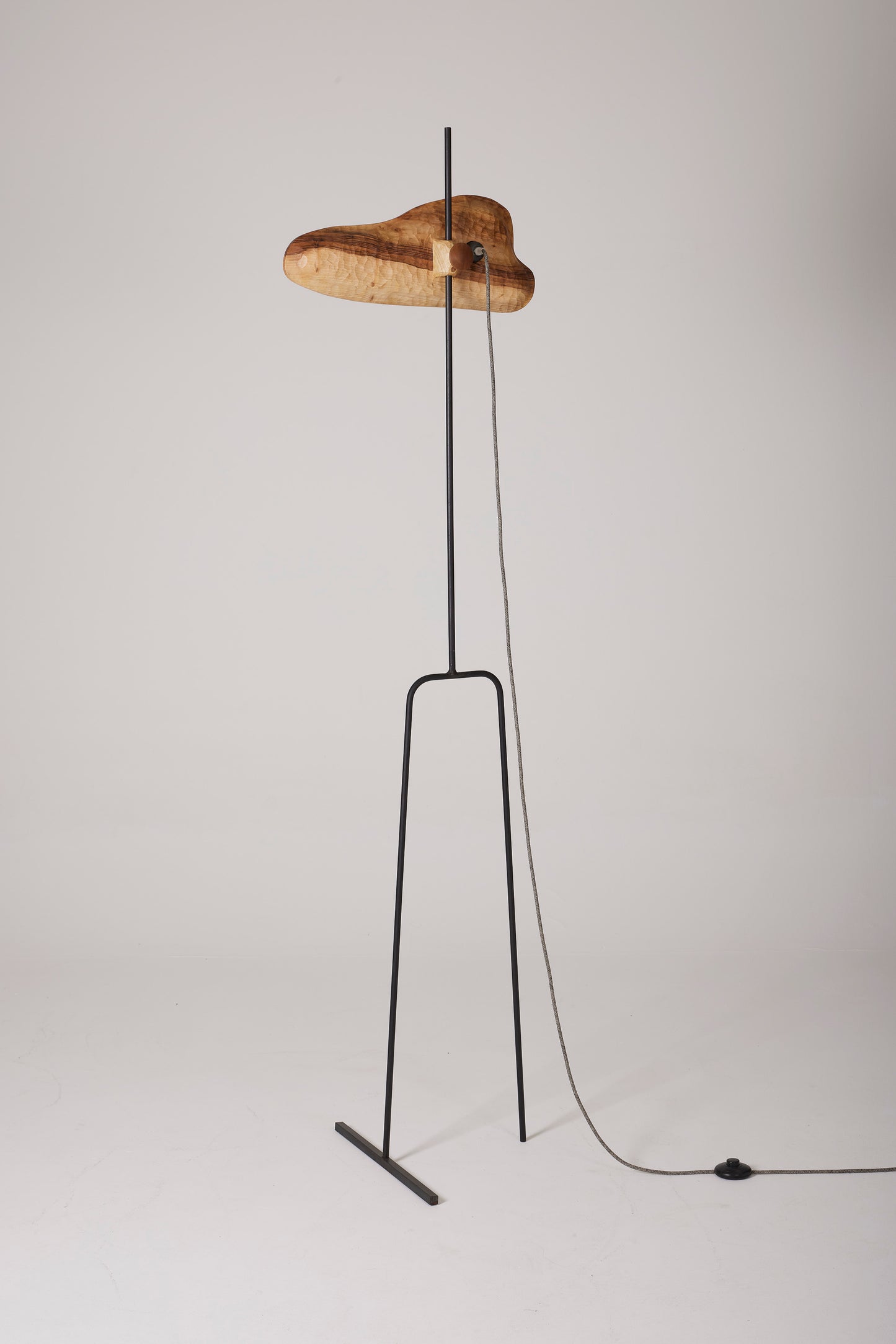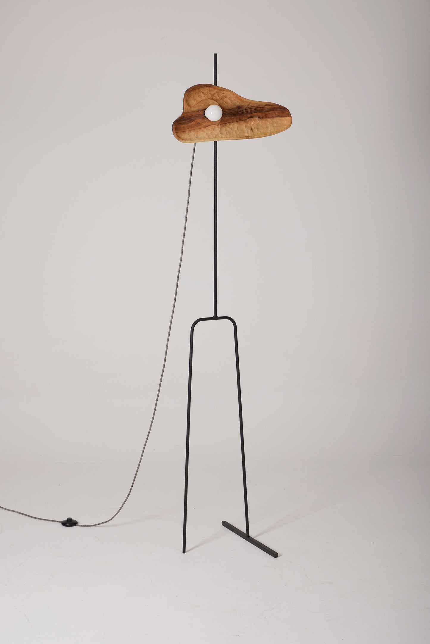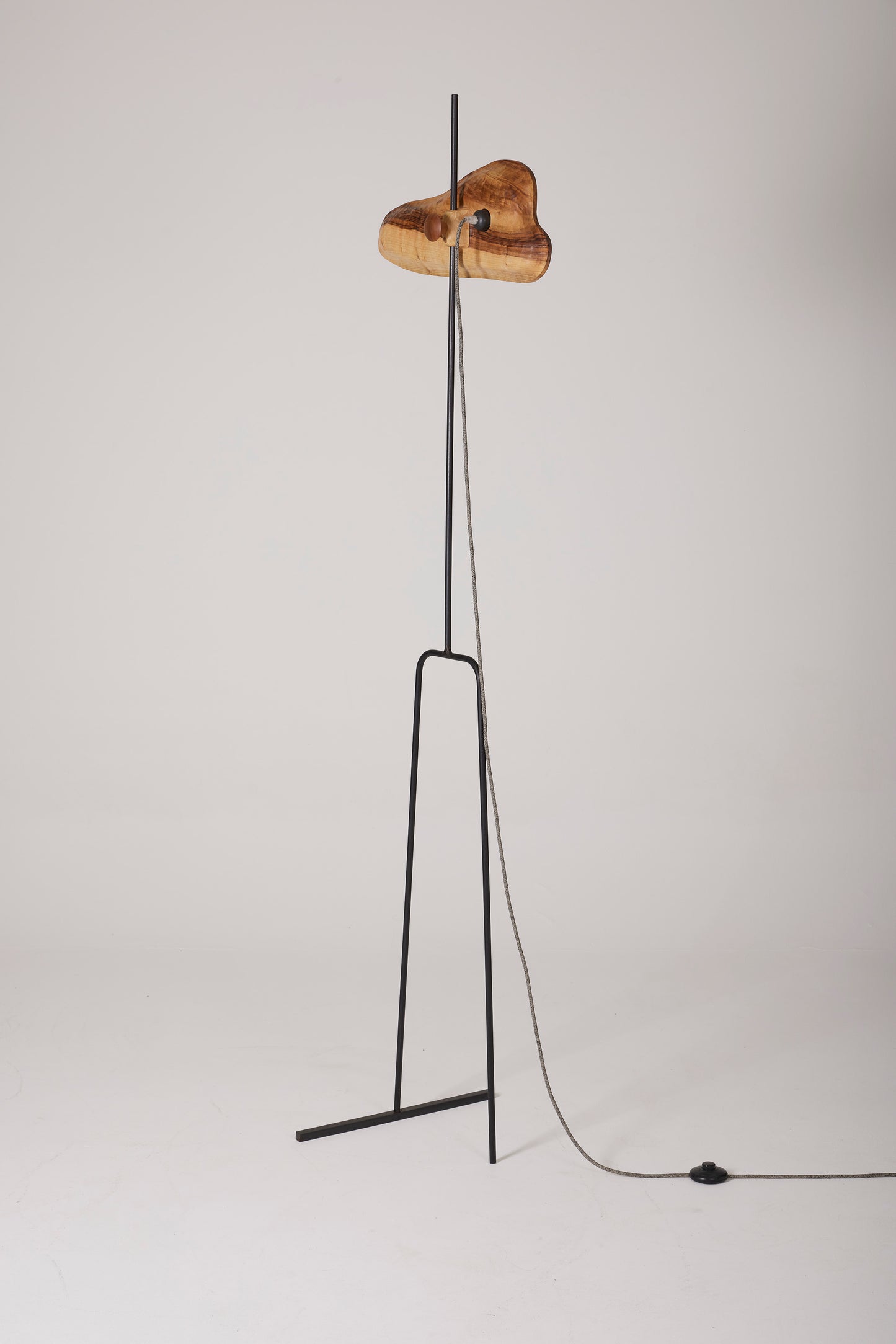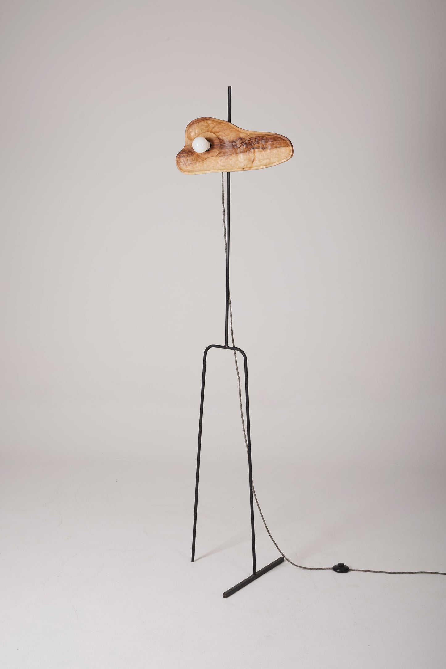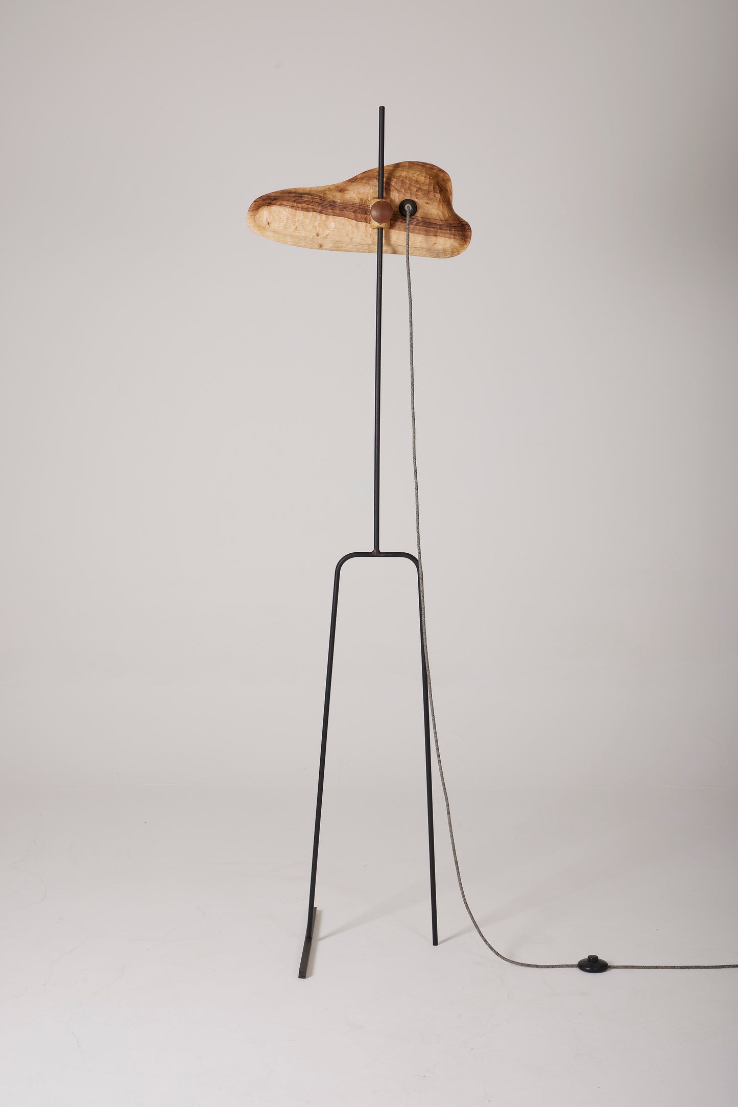 LAMPADAIRE "OISEAU" EN CHÊNE HUILÉ ET ACIER PAR ELOI SCHULTZ. 2020.