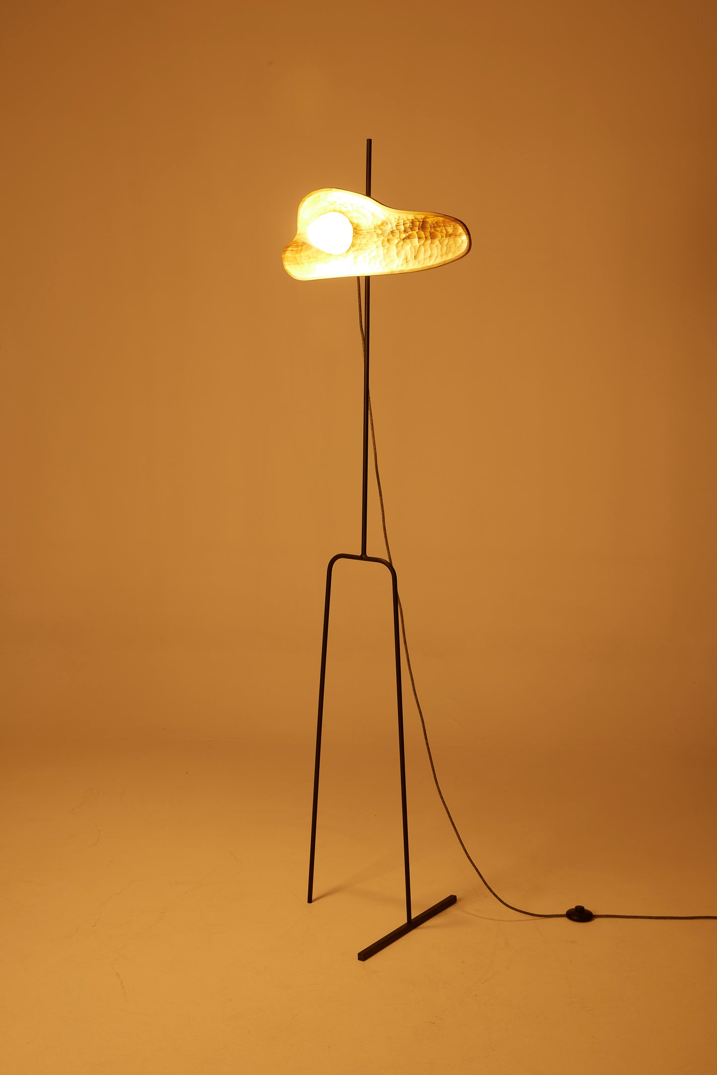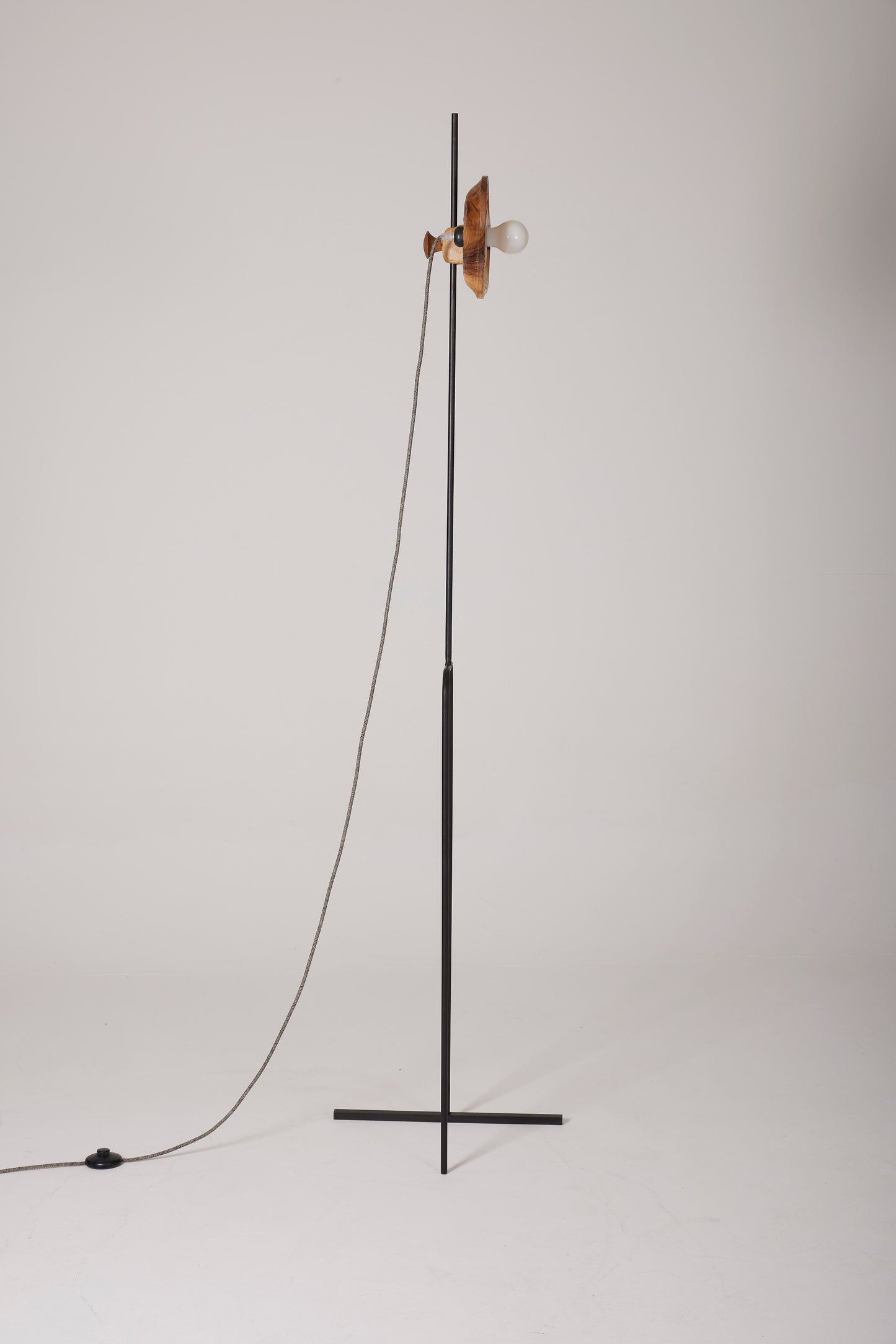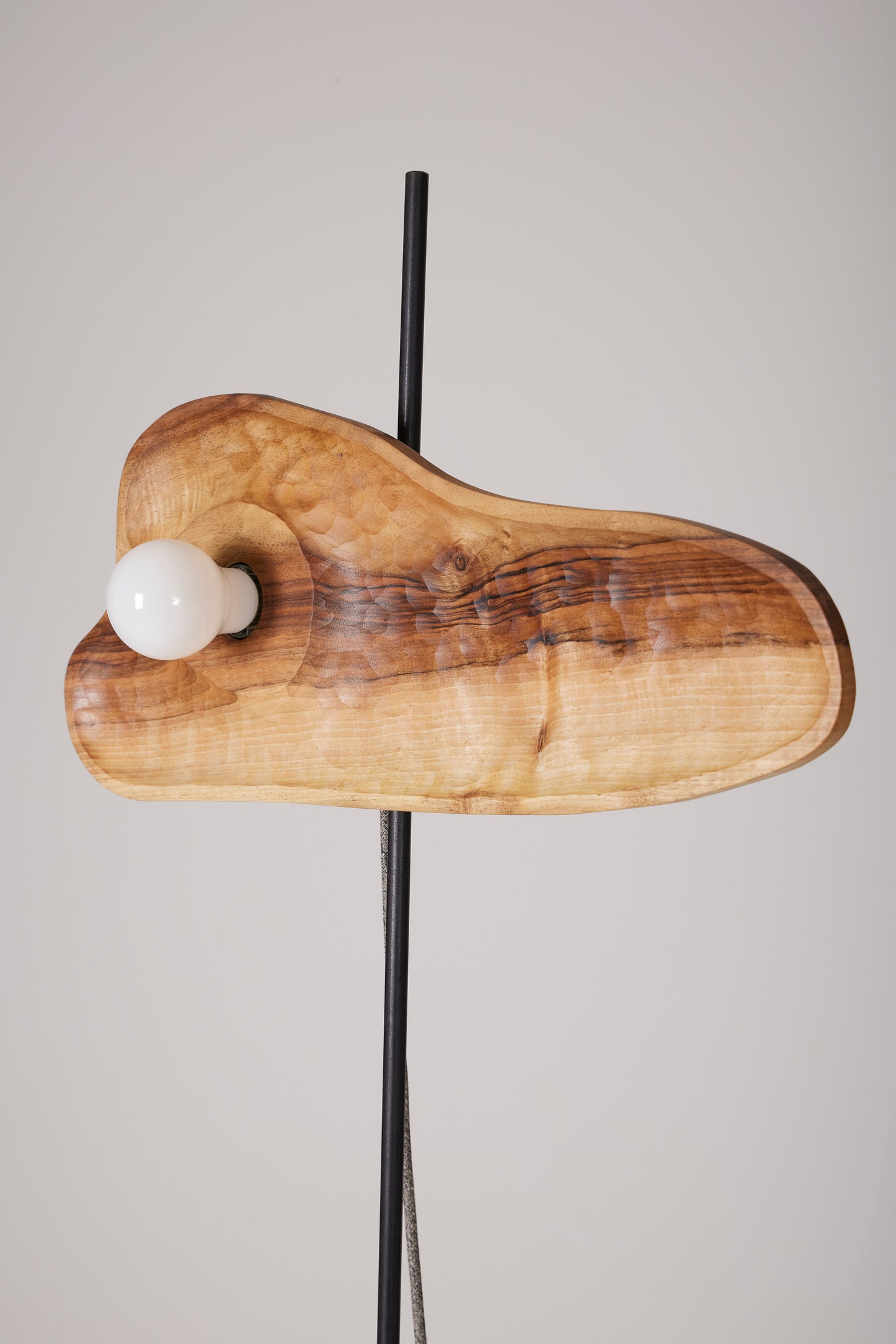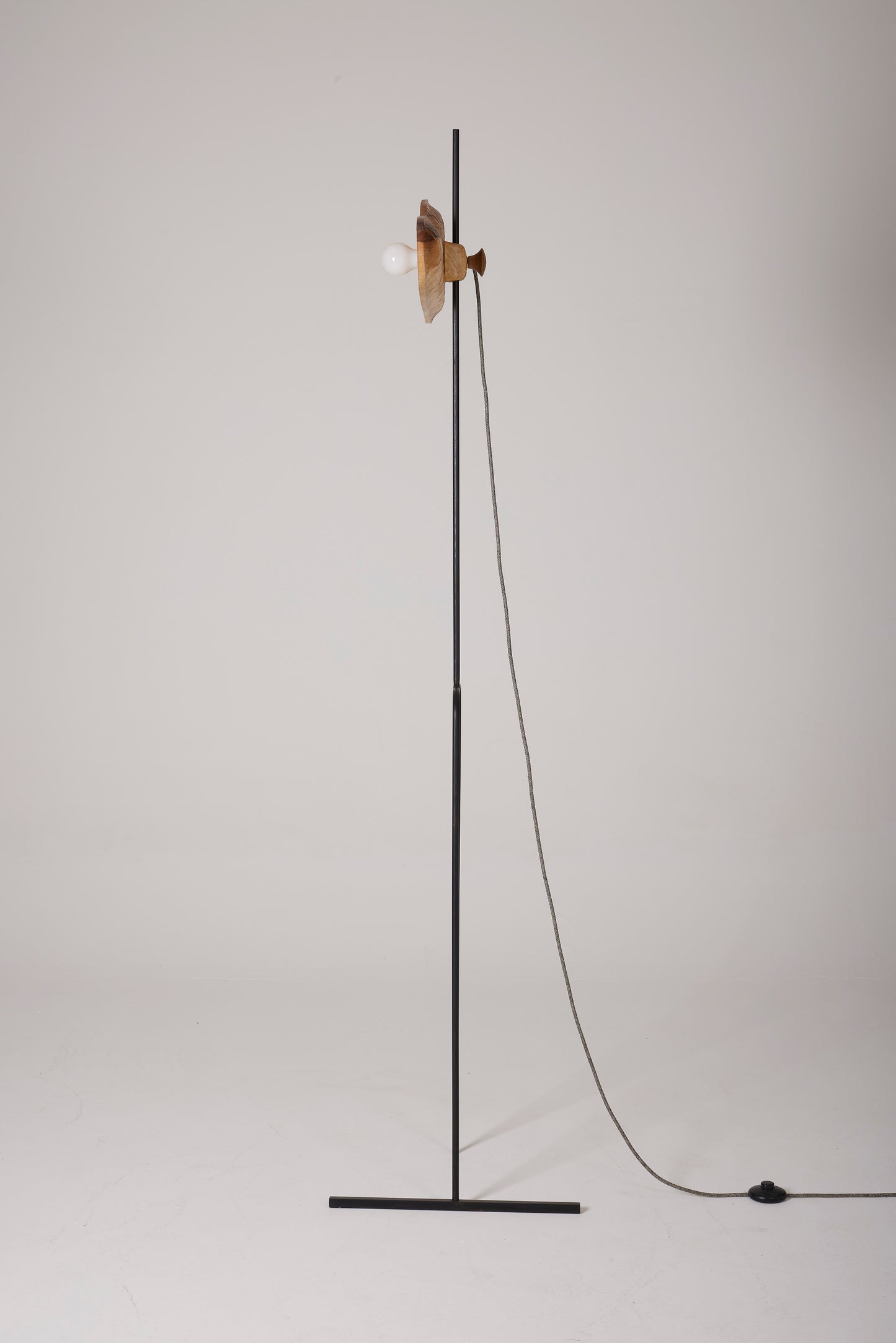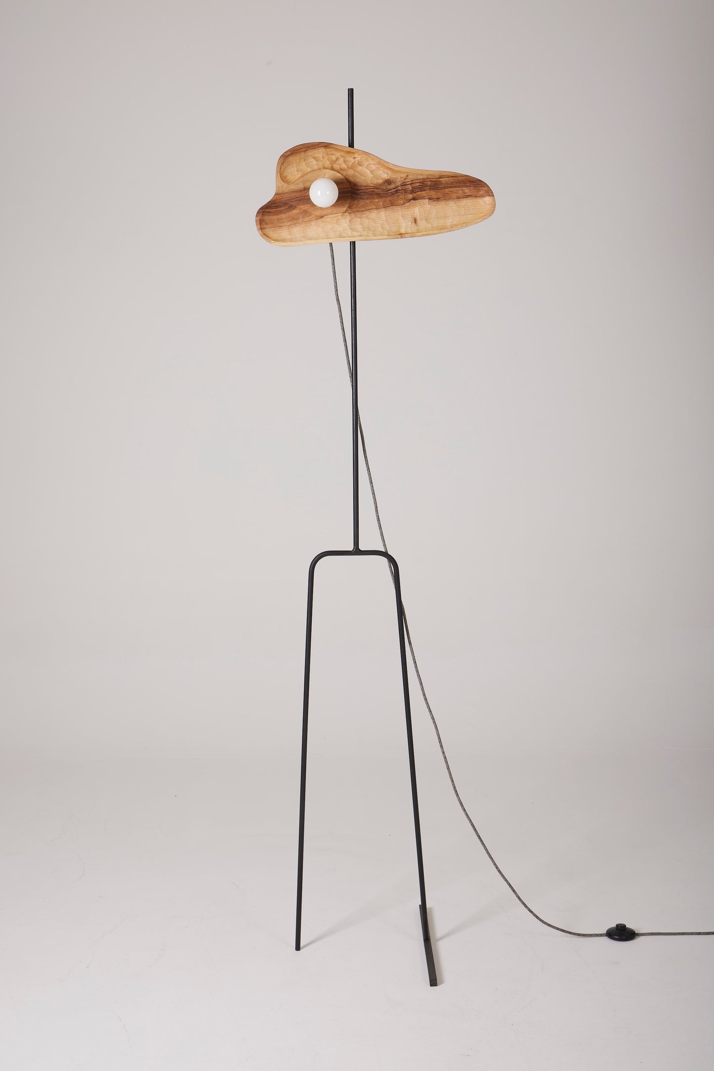 LAMPADAIRE "OISEAU" EN CHÊNE HUILÉ ET ACIER PAR ELOI SCHULTZ. 2020.