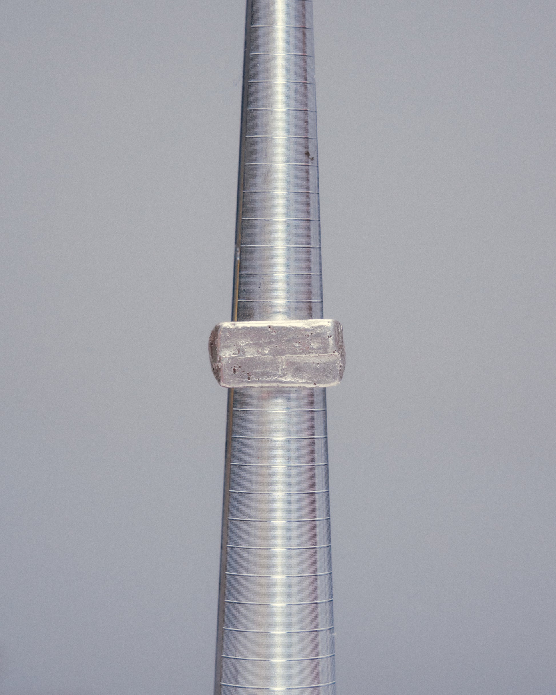 BAGUE "RAW SIGNET", PAR ANYOTHER KINGDOM. CHACUN DE CES ÉLÉMENTS EST COULÉ À LA MAIN EN ARGENT STERLING 925, LA TEXTURE BRUTE EST CRÉÉE PAR LE PROCESSUS DE MOULAGE AU SABLE.