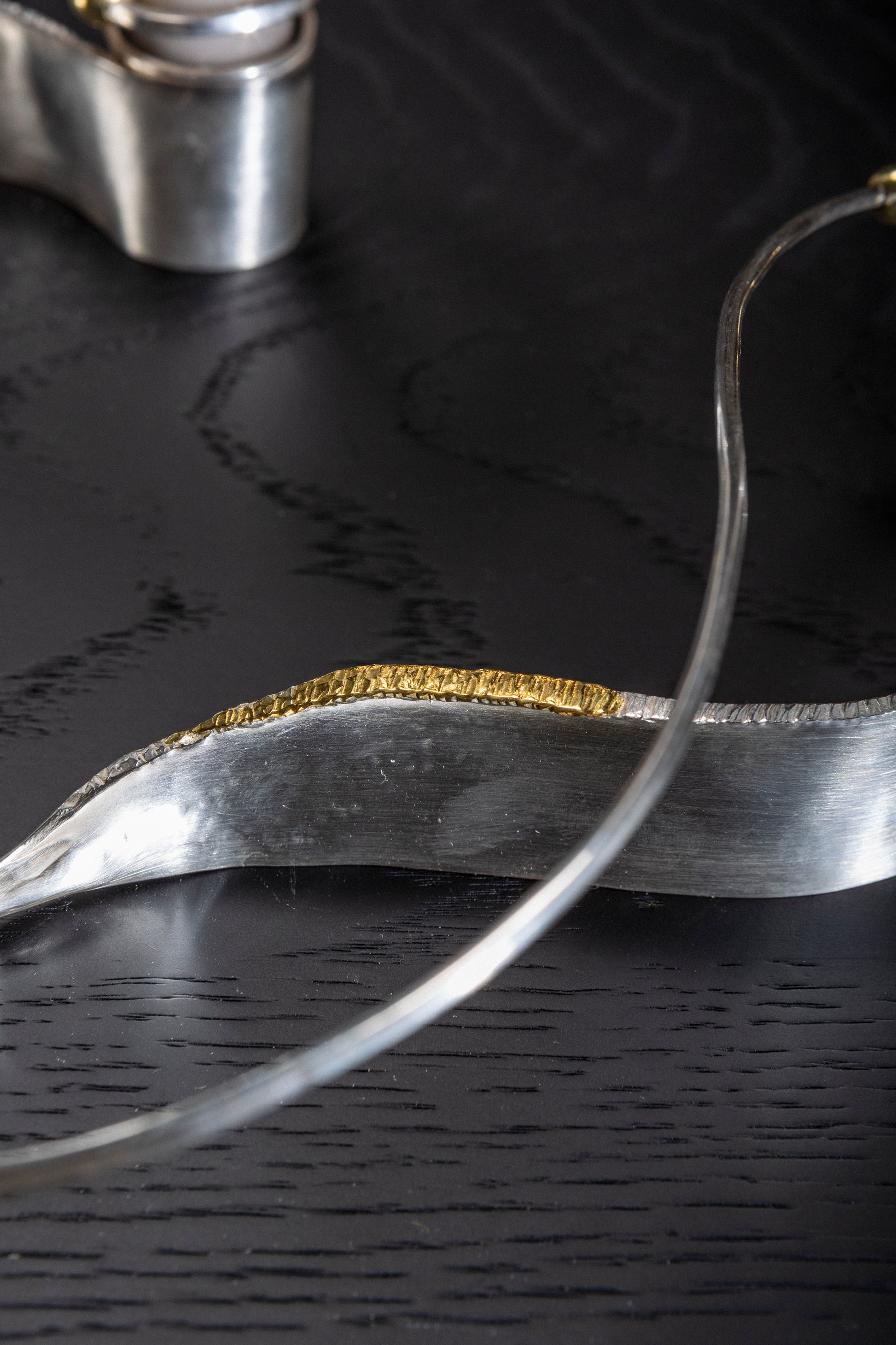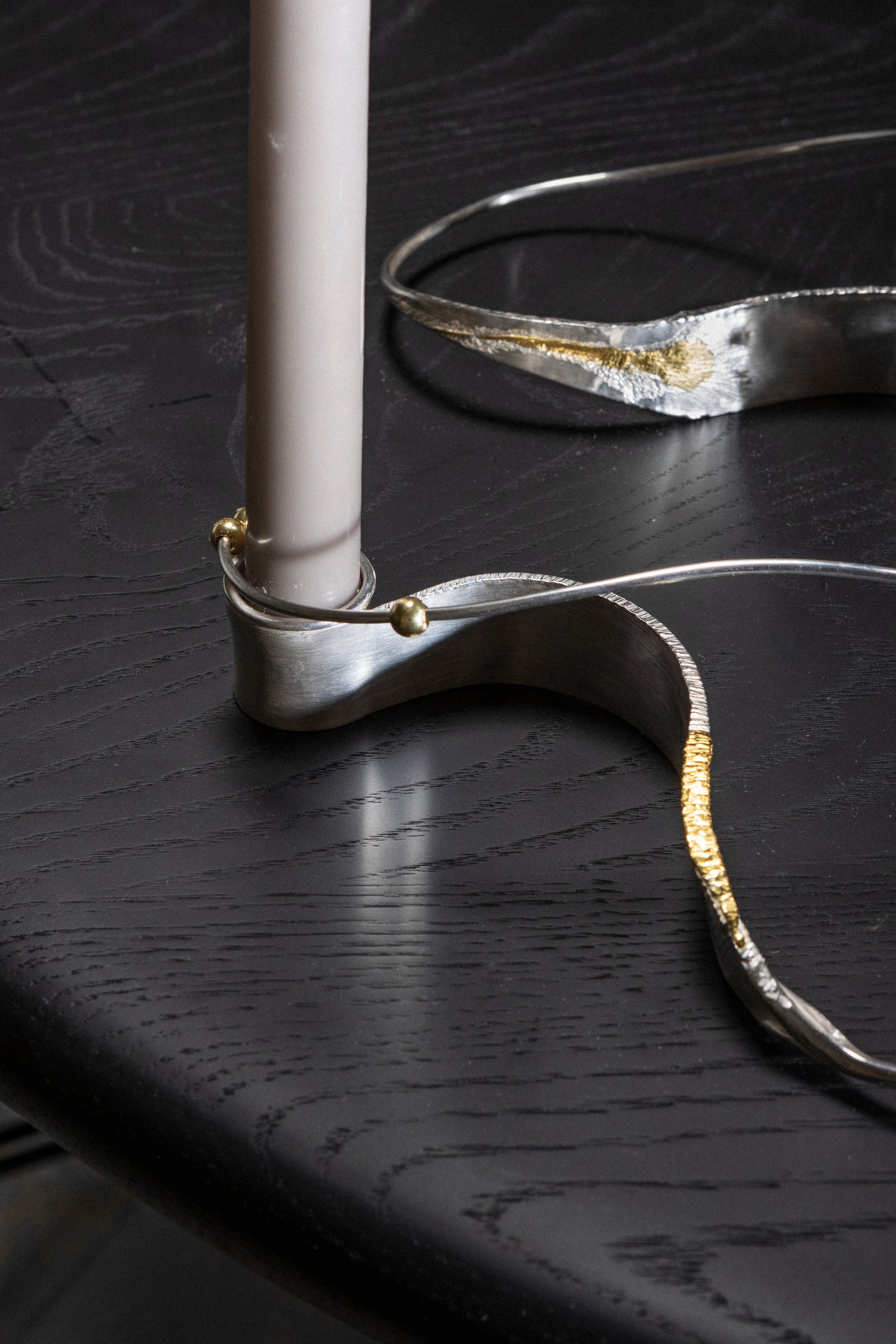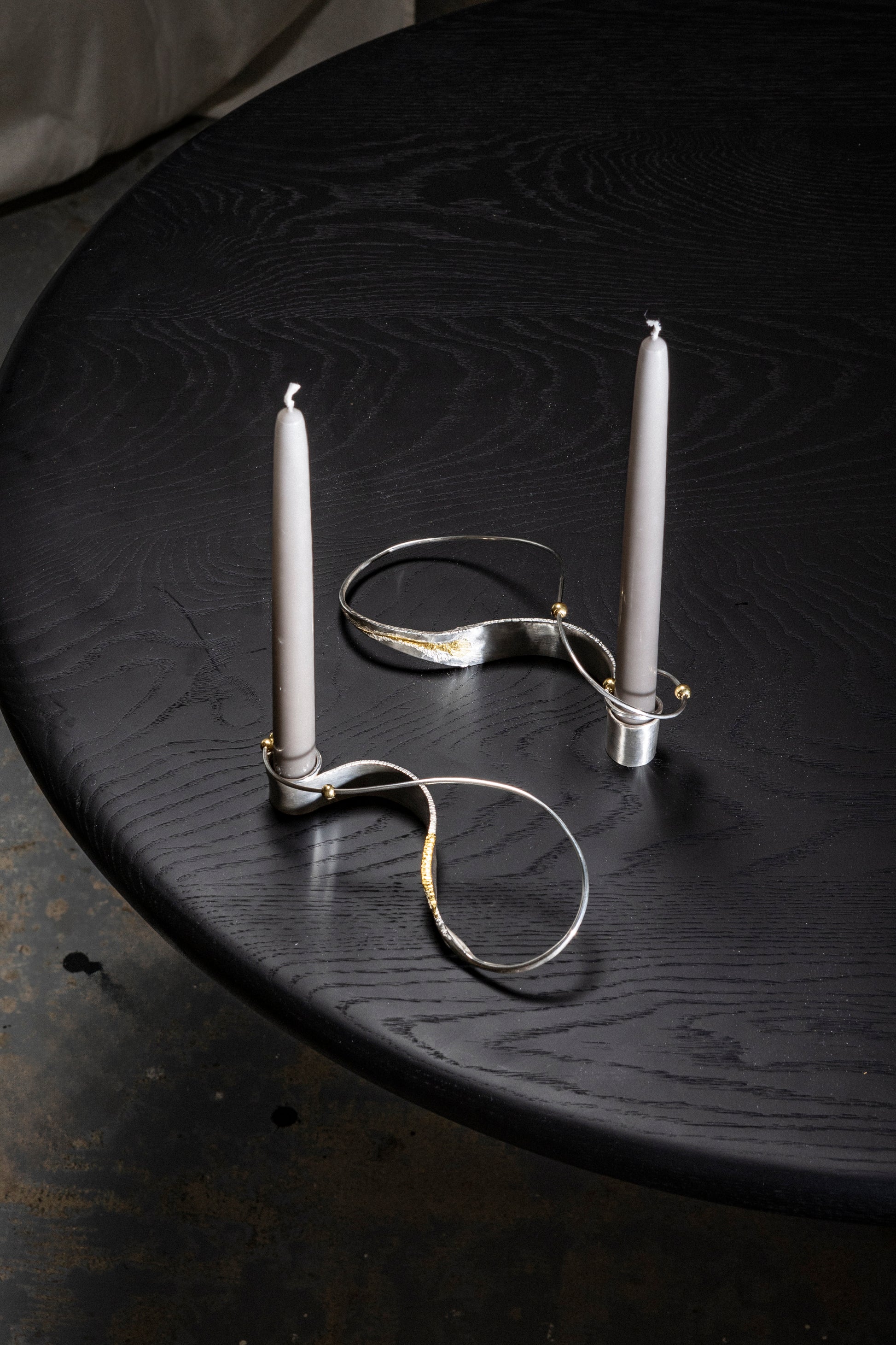 Paire de Bougeoirs "Counting time" en argent massif 925, Argent 925°/00 et or fin 999°/00, par l'artiste Karen Gay. Pièces unique, entièrement réalisées à la main.