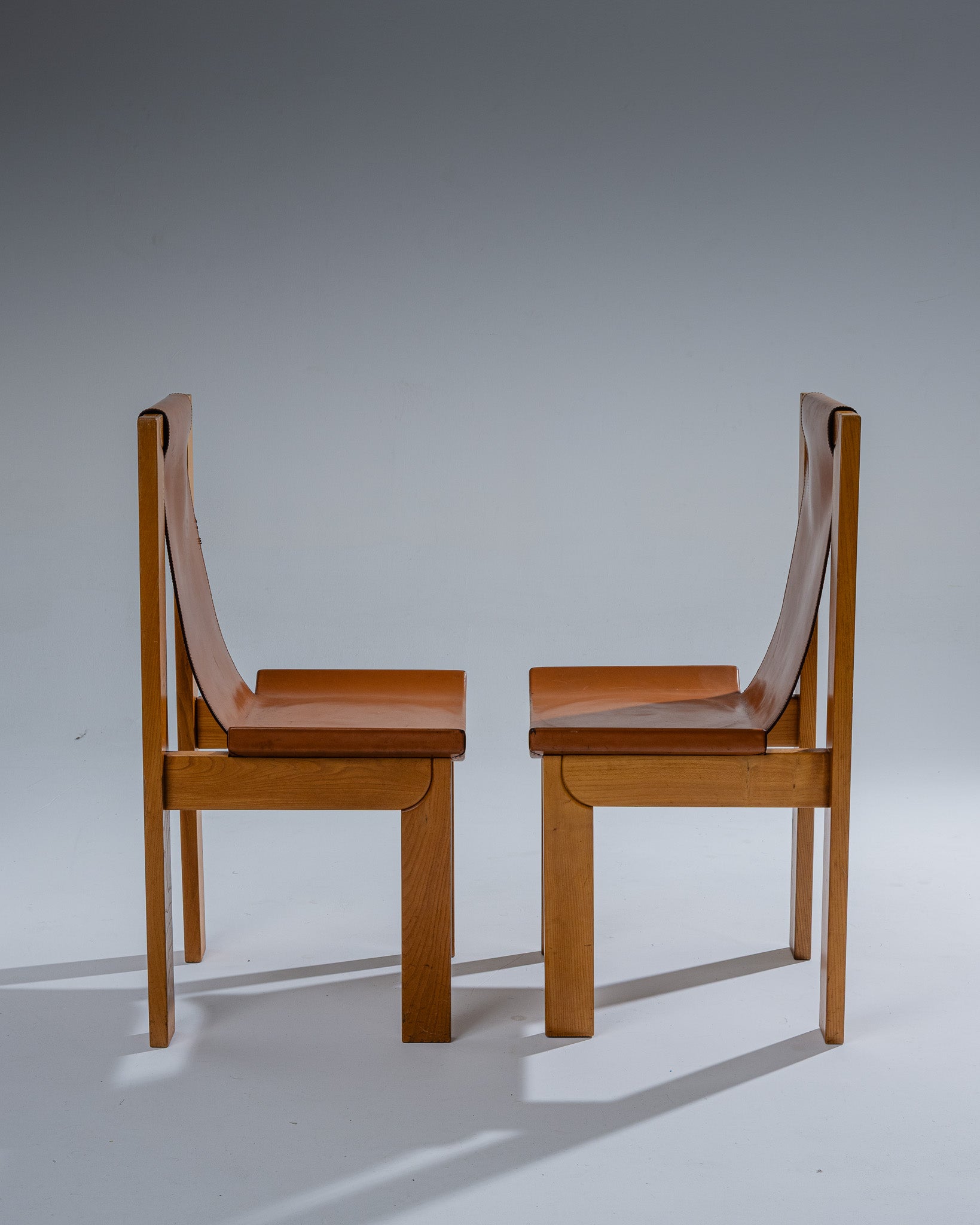 PAIRE DE CHAISES EN ORME ET CUIR, LUIGI GORGONI, 1970s