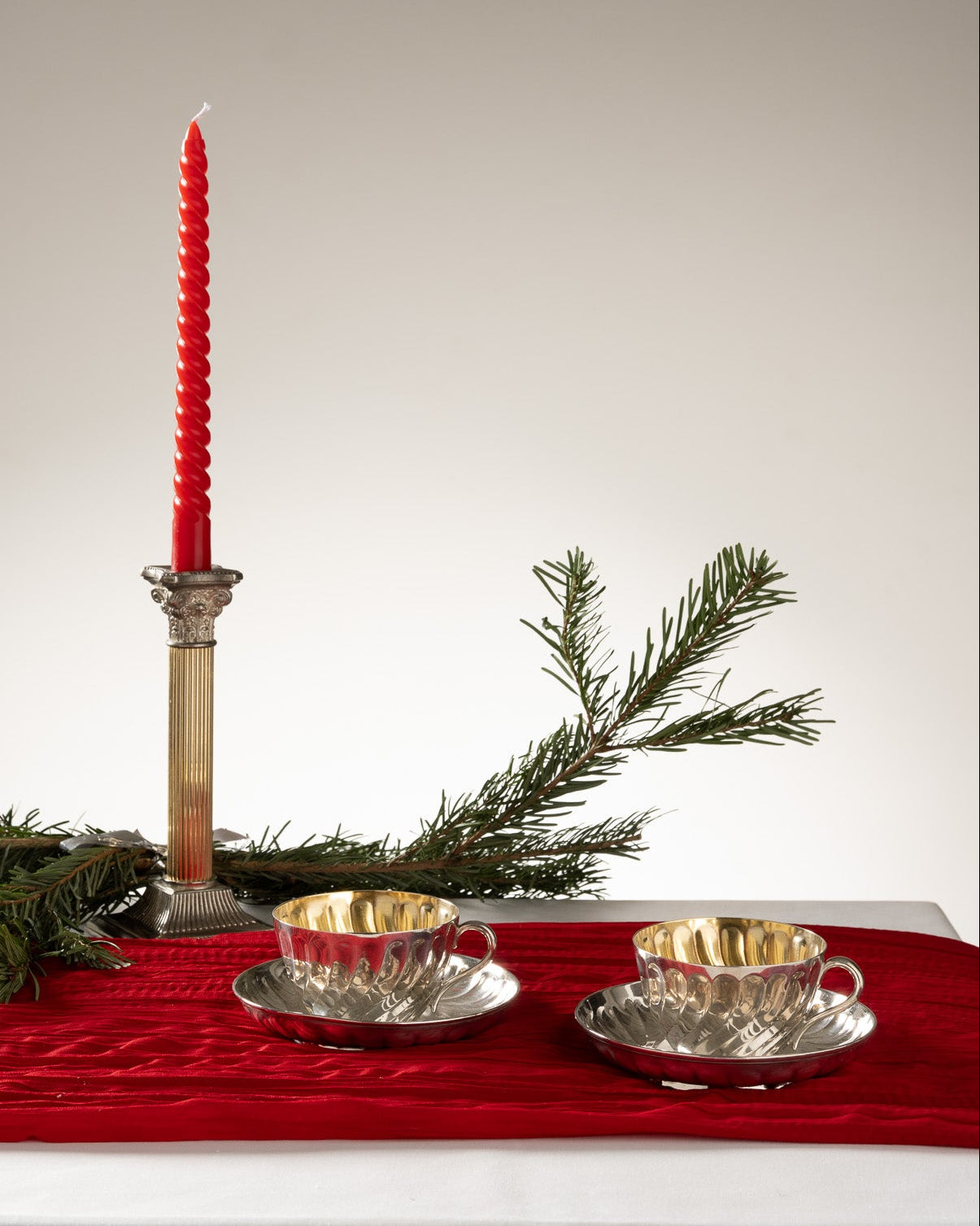 PAIRE DE TASSES ET SOUCOUPES EN MÉTAL ARGENTÉ, 1970s