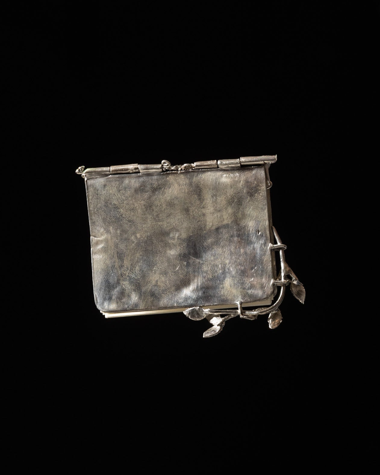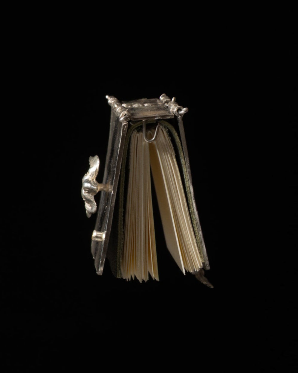 Petit carnet "Oiseau" en argent et orné d'une citrine, fils argent 925, réalisé entièrement à la main par l'artiste Mia Gosset. Pièce unique.