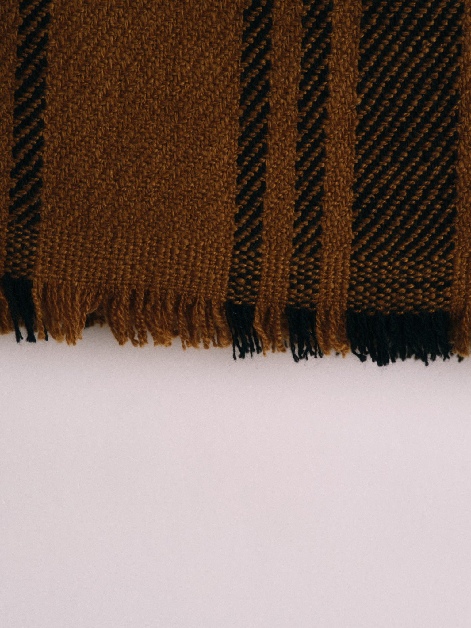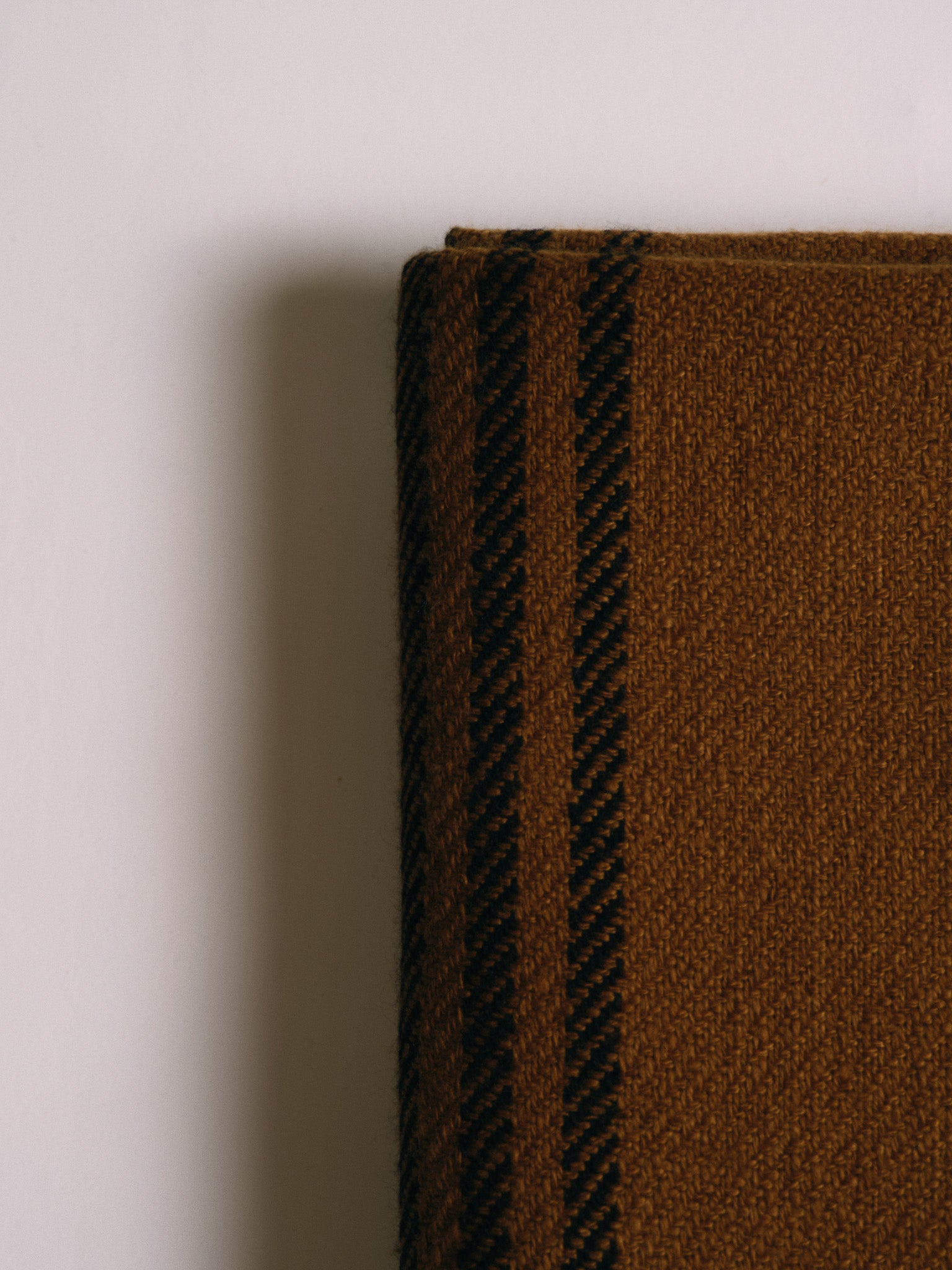 Le modèle "Stripe" conjugue un tissage croisé sophistiqué, alternant fils horizontaux et verticaux pour former de larges aplats de couleur.