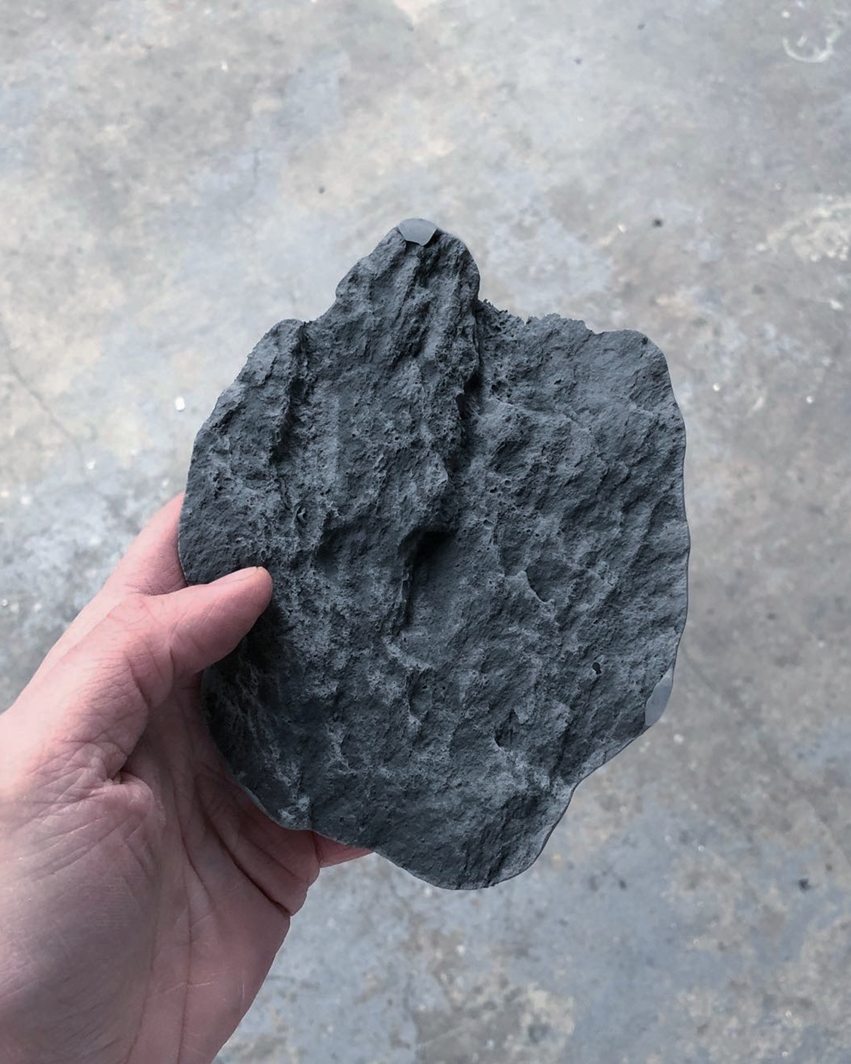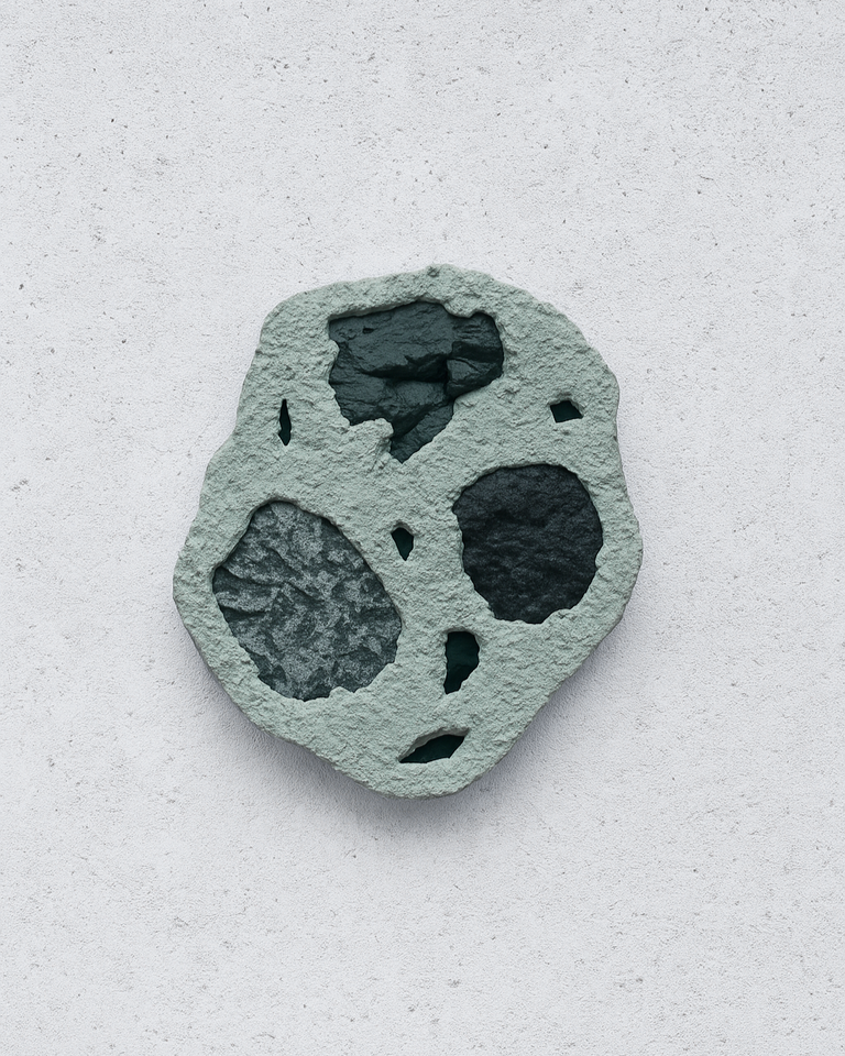 Sculpture murale "ROCASSEUS 05" par l'architecte et designer Paul Hardy. Née de moulages directs sur des roches naturelles. Le travail de Paul Hardy se distingue par des matériaux de construction détournés tels que le sable, le plâtre, le bois et le verre. Ses créations naissent d’une recherche minutieuse de formes inspirées par la nature et les minéraux, explorant la fusion entre l’esthétique organique et la fonctionnalité du design.