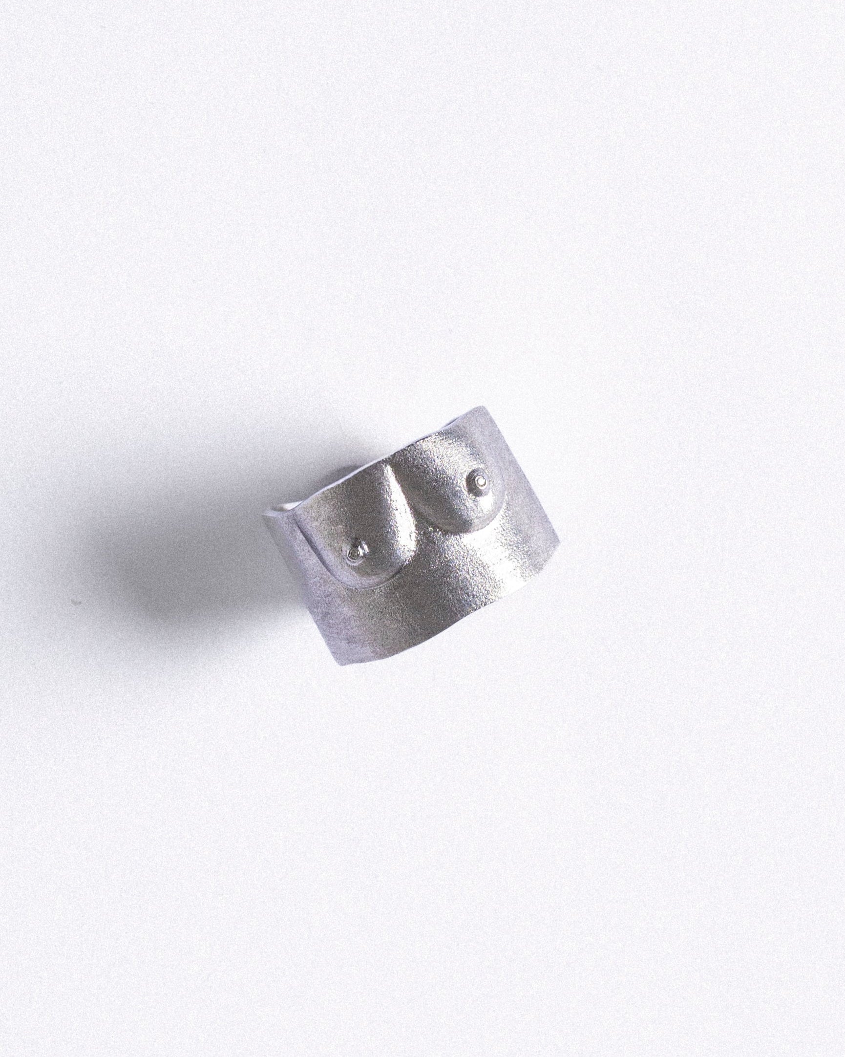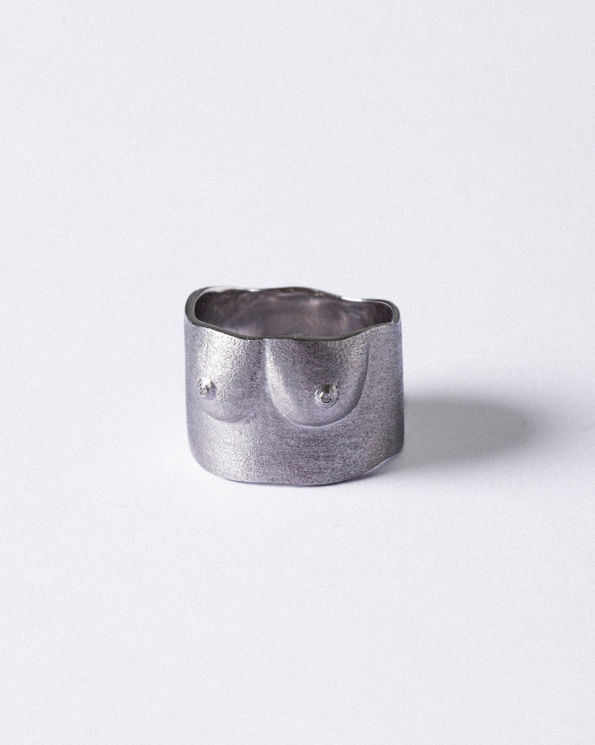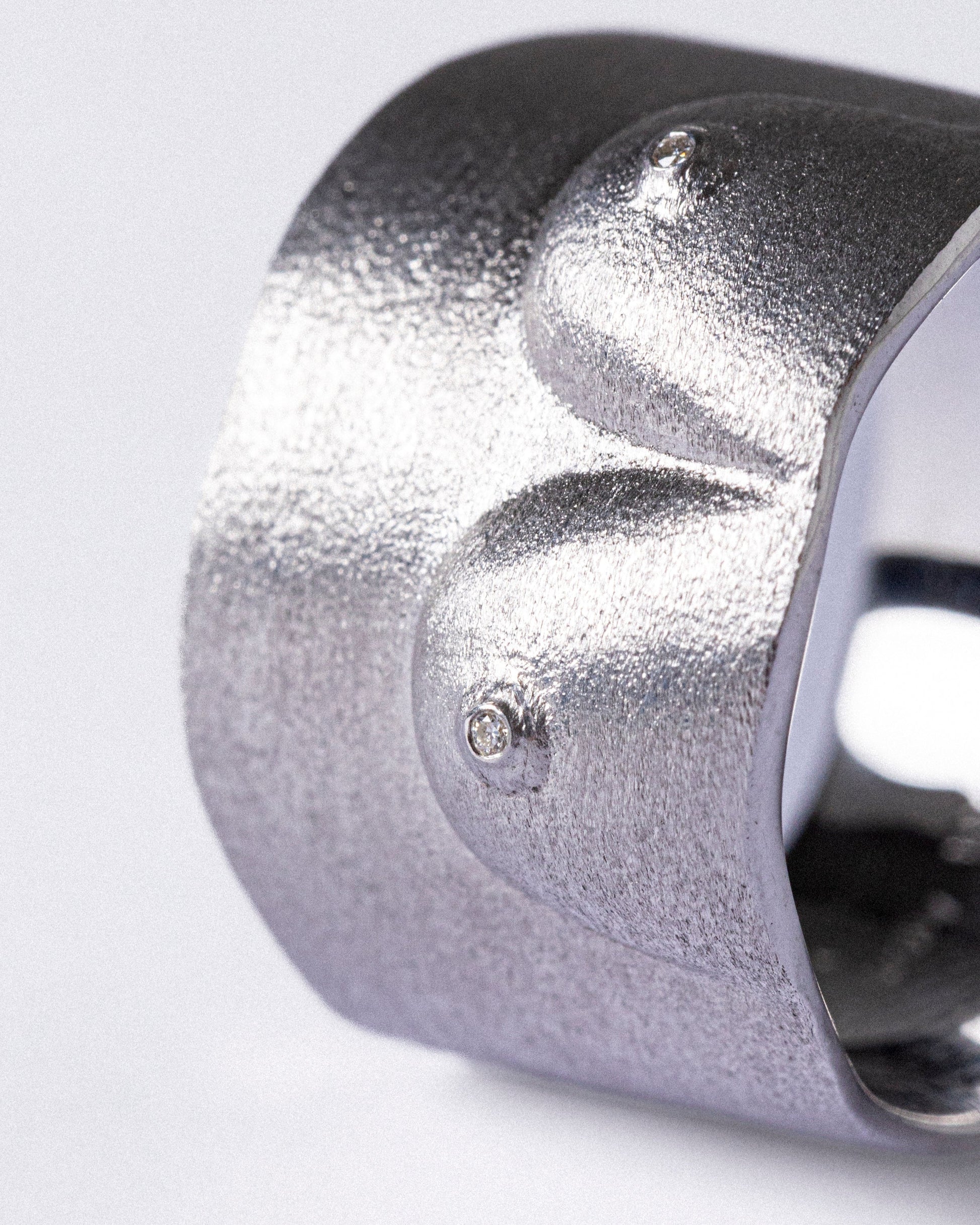 Bague Sculpture N°2 Light en argent 925 rhodié brossé et diamants G/VS, par Semper Astra.