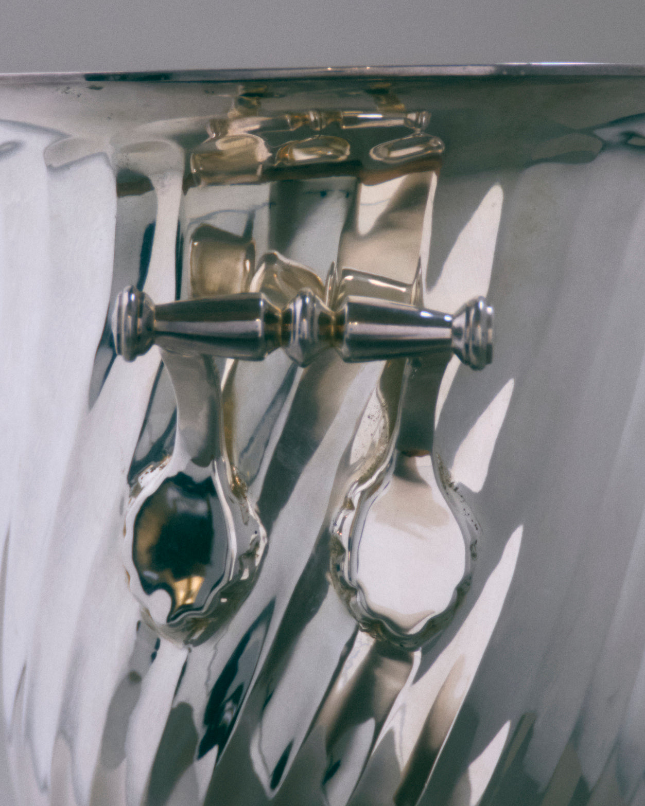 SEAU À CHAMPAGNE EN MÉTAL ARGENTÉ TORSADÉ, 1950s