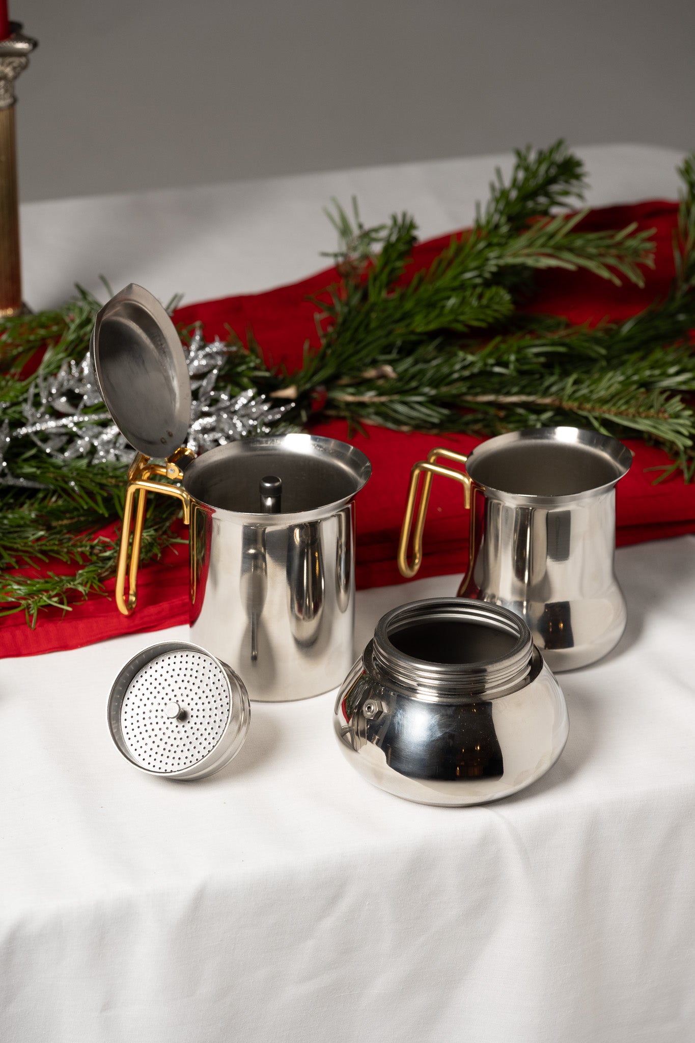 SERVICE À CAFÉ EN INOX ET LAITON, ITALIE, 1980s