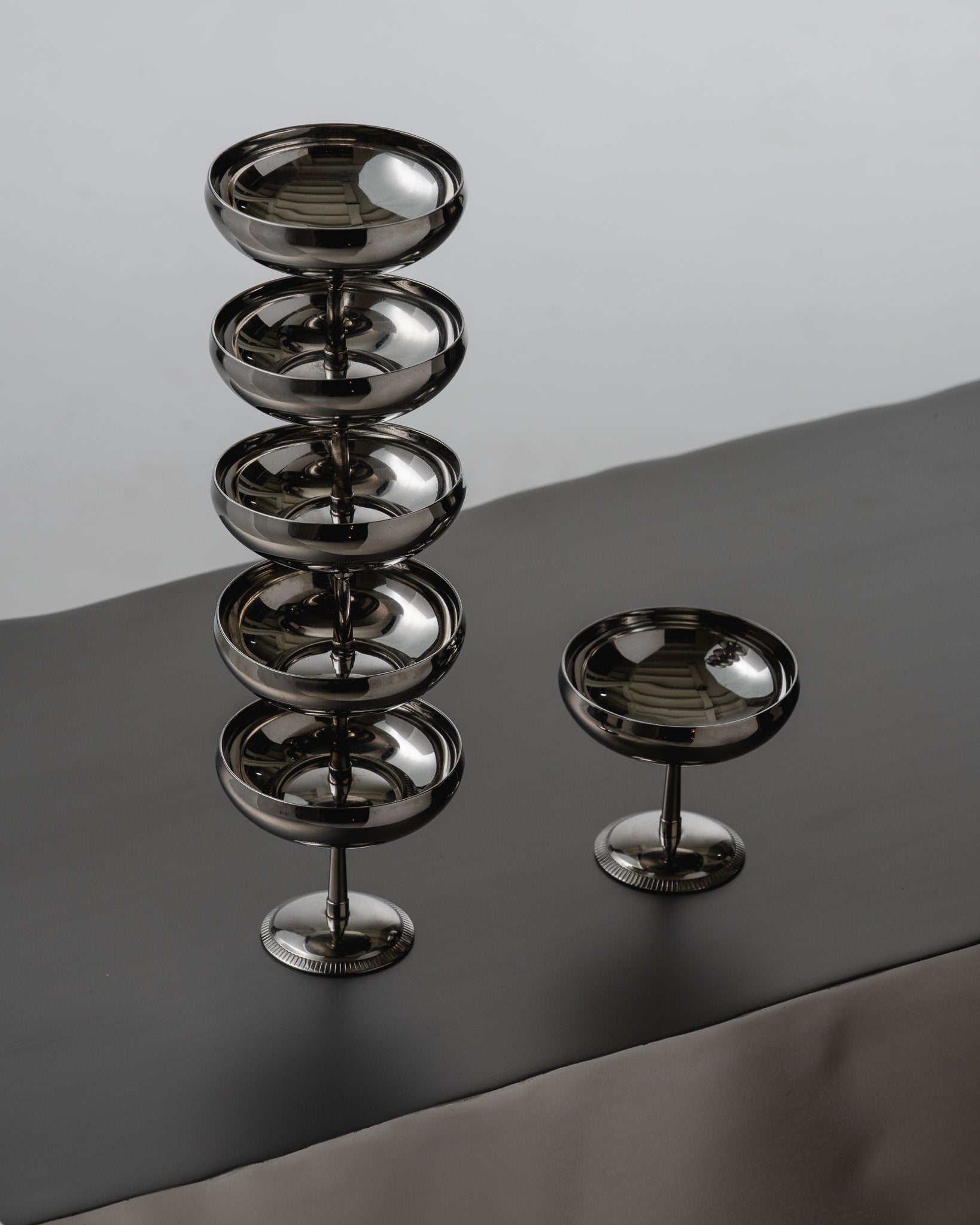 Ensemble de 6 coupes à dessert en acier inoxydable par Letang Remy. Très bon état.