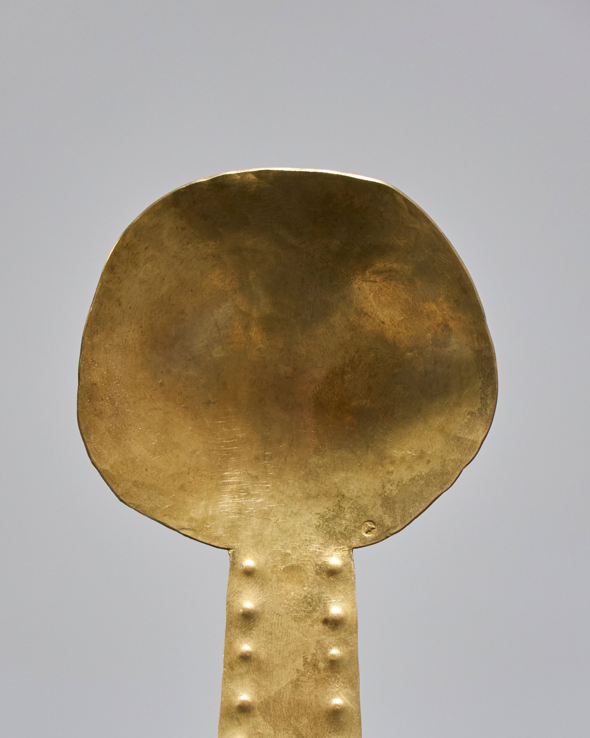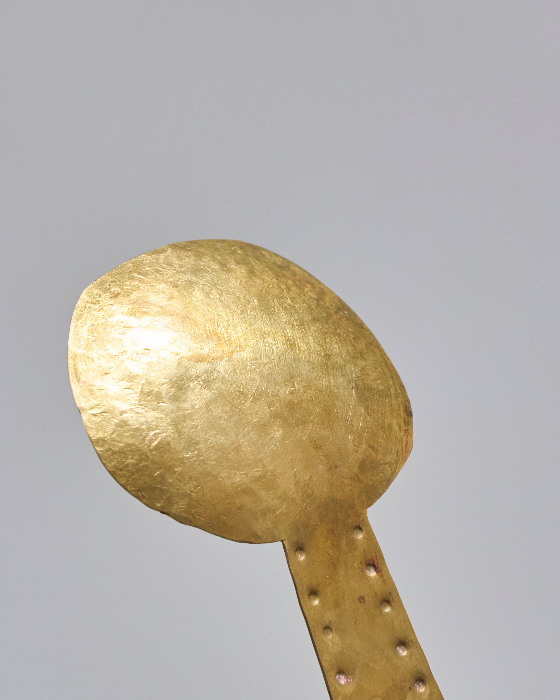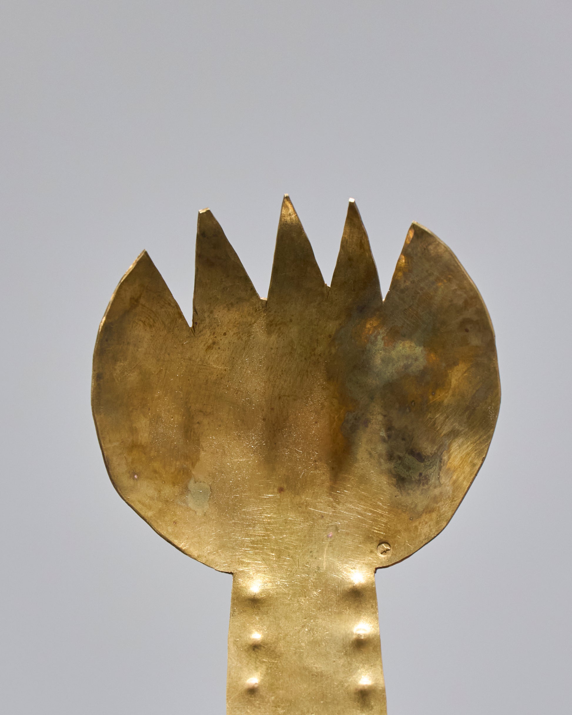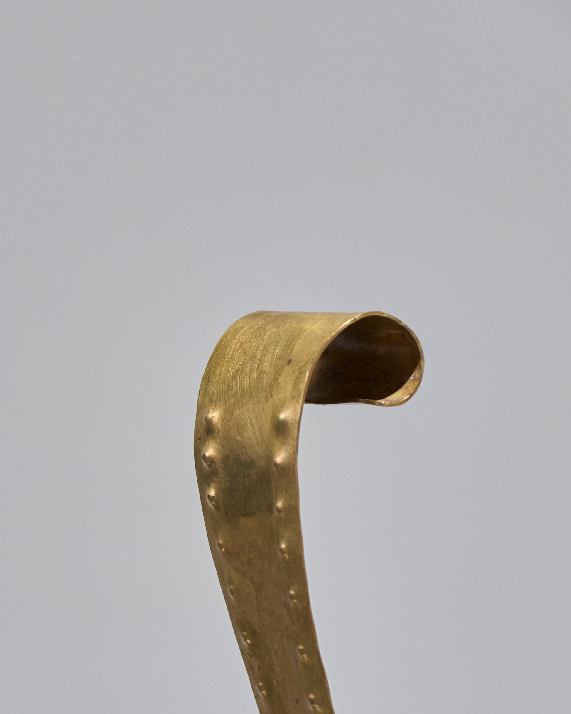Set de couverts à salade "Crocodile" à manche roulé en laiton doré, par le designer Sebastiao Lobo. Chaque pièce est unique.