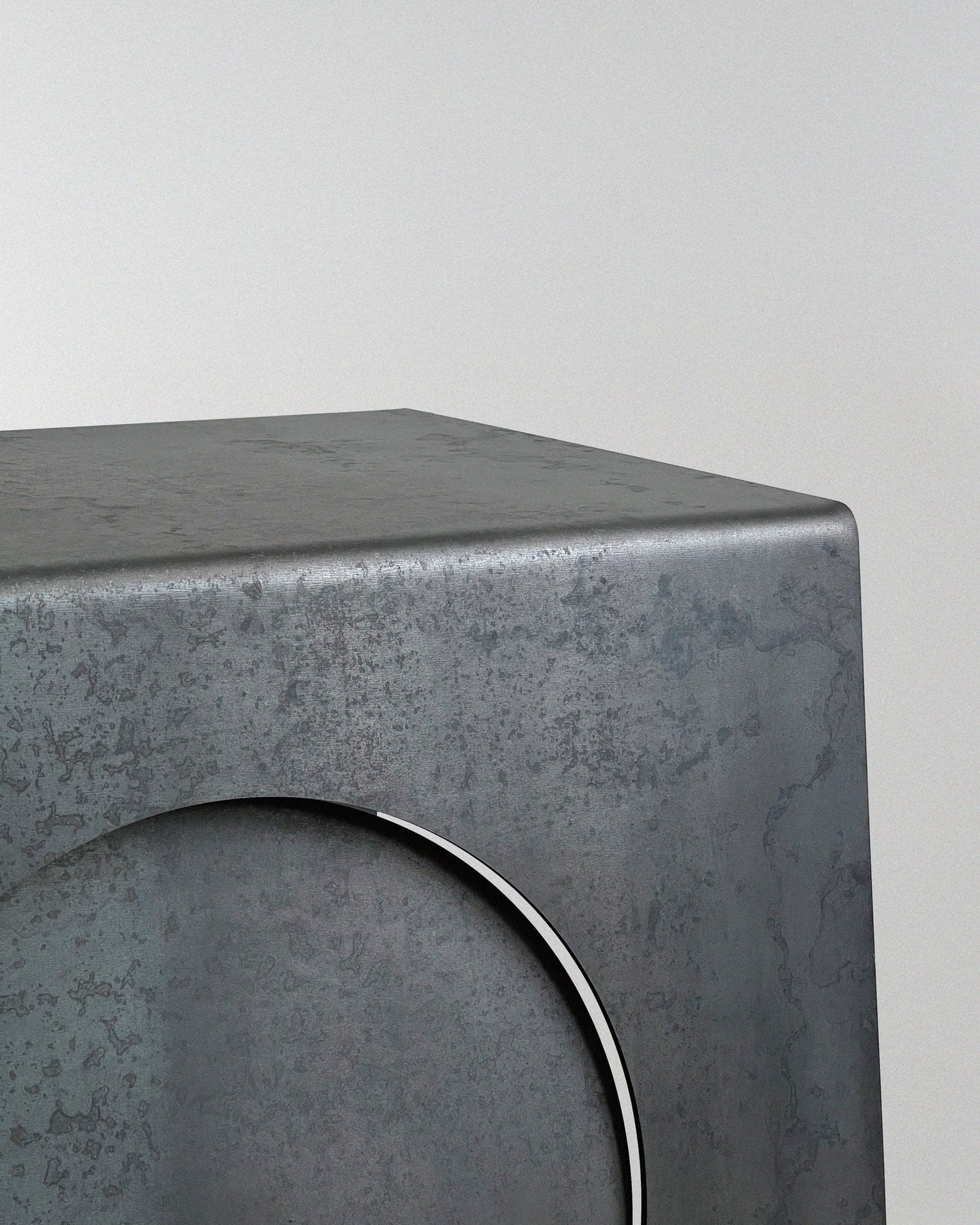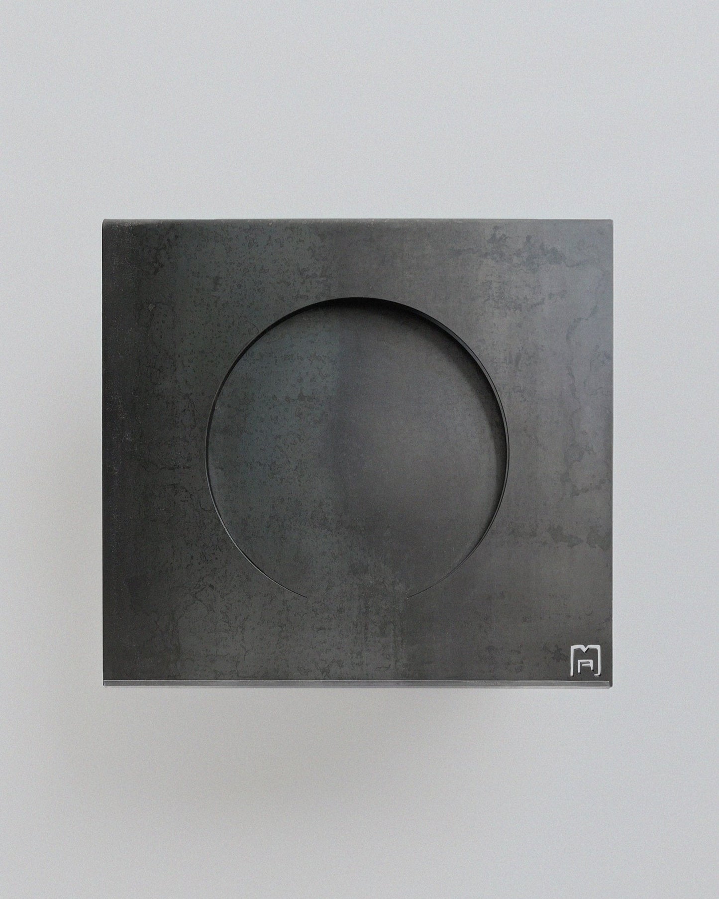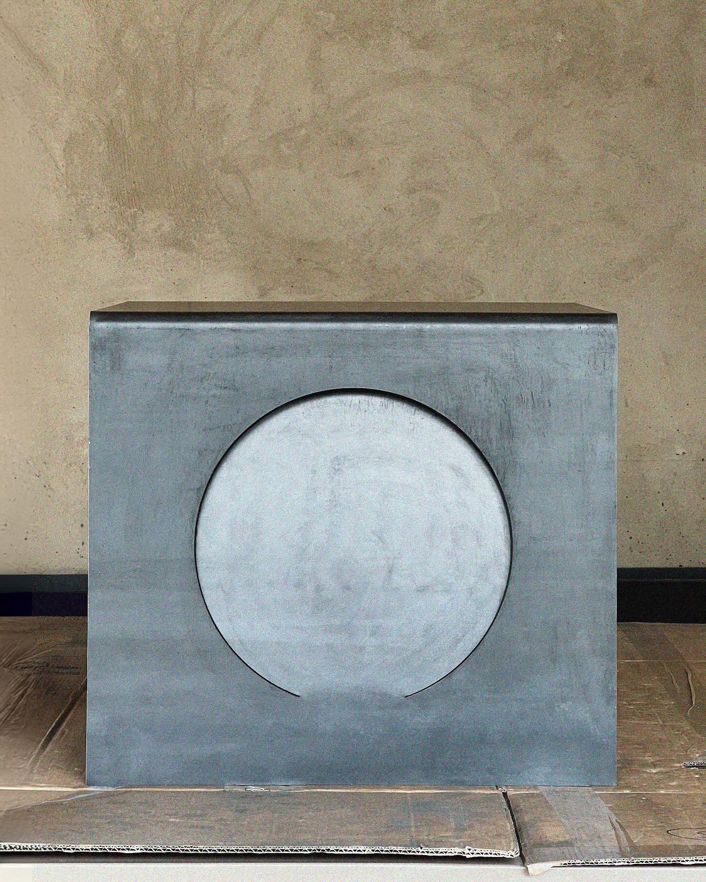 Une plaque d’acier pliée pour retrouver sa forme initiale, puis deux cercles subtilement enfoncés vers l’intérieur. L’objet prend alors vie, révélant ses formes et ses ombres au gré des mouvements dans l’espace. Chaque feuille d’acier présente ses propres irrégularités de fabrication, rendant chaque pièce unique. L’aspect peut donc varier par rapport aux images affichées.