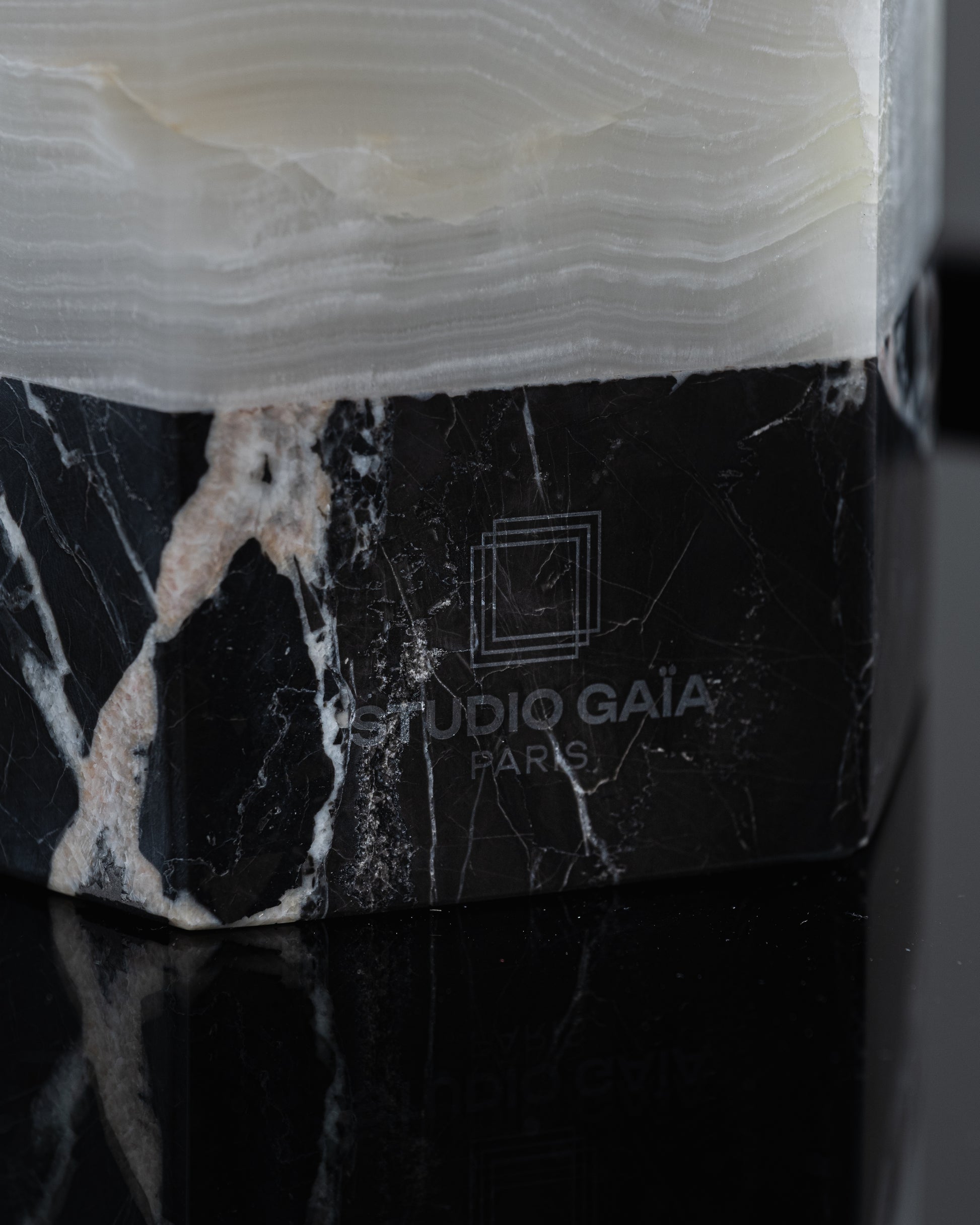 Vase Emma en marbre Grand Antique, Onyx Blanc et Vert, par Studio Gaïa.