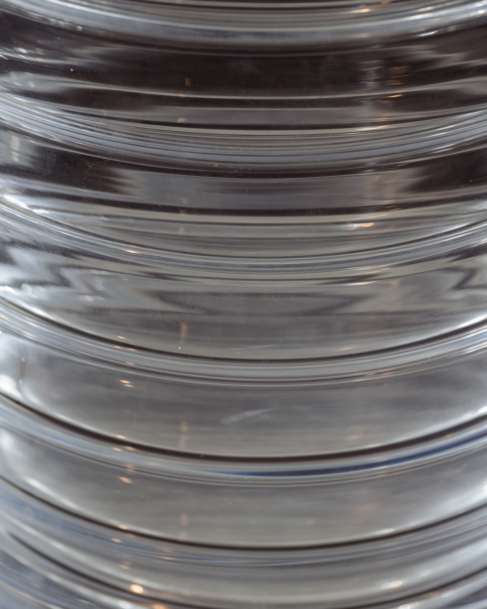Le modèle se distingue par sa forme cylindrique soulignée d’anneaux horizontaux réguliers, typiques du vocabulaire formel de la marque. Fabriqué en Pologne, ce vase combine fonctionnalité et esthétique contemporaine.