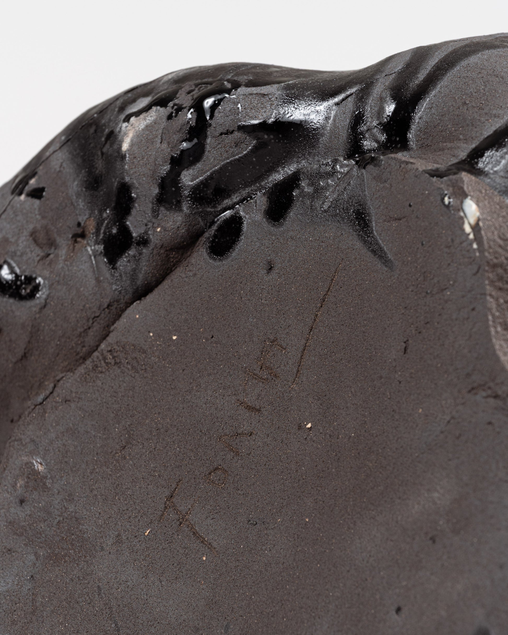 Vase en grès noir mat "Soulages" réalisé par l'artiste céramiste Suzie Lapierre d'Argy, 2025. De forme libre, le vase souligne le travail manuel de l'artiste et l'authenticité du matériau brut.