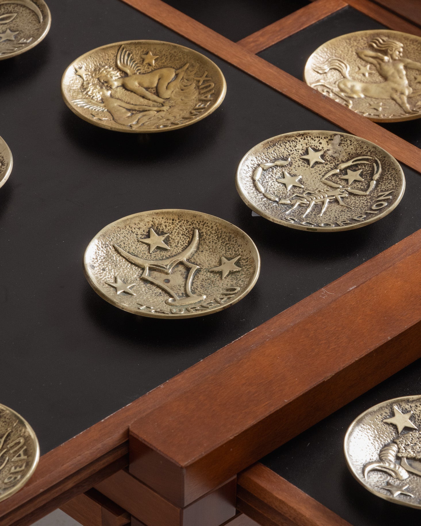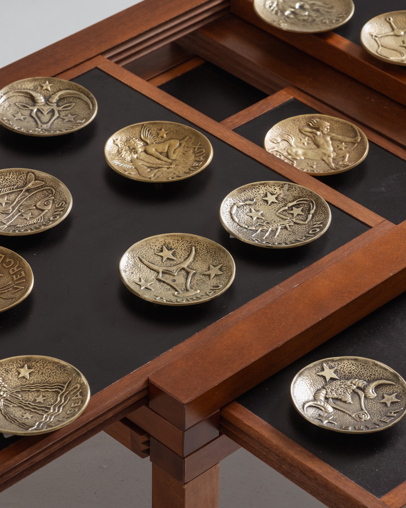 Vide-poches / coupelle en bronze doré portant le signe astrologique du Taureau, par Max Le Verrier dans les années 1930. Signature sous la base, complétée des dates "21 avril 20 mai". En superbe état, avec une patine naturelle.